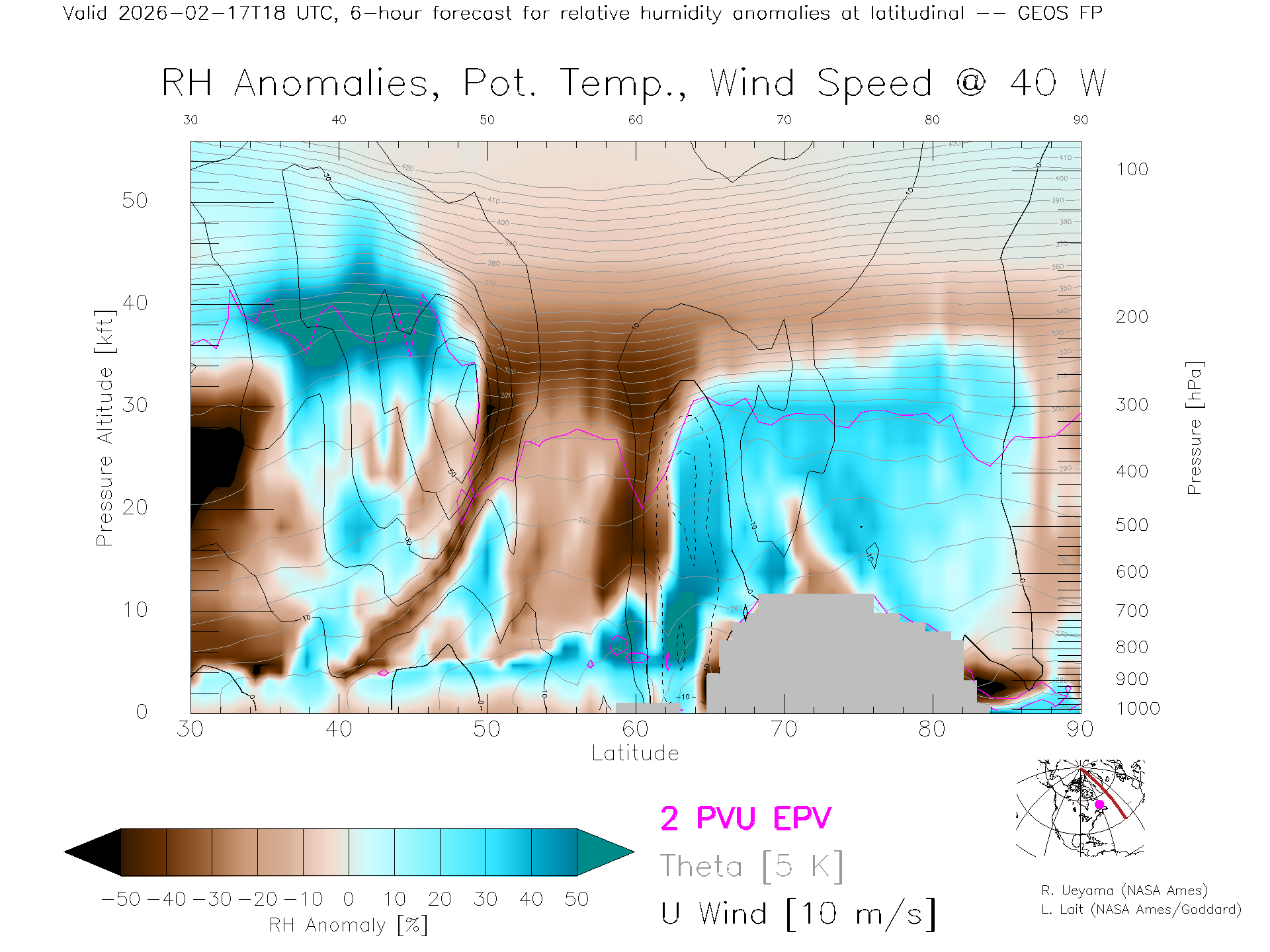 GEOS Forecast Rel. Hum. X-Section (40 W)