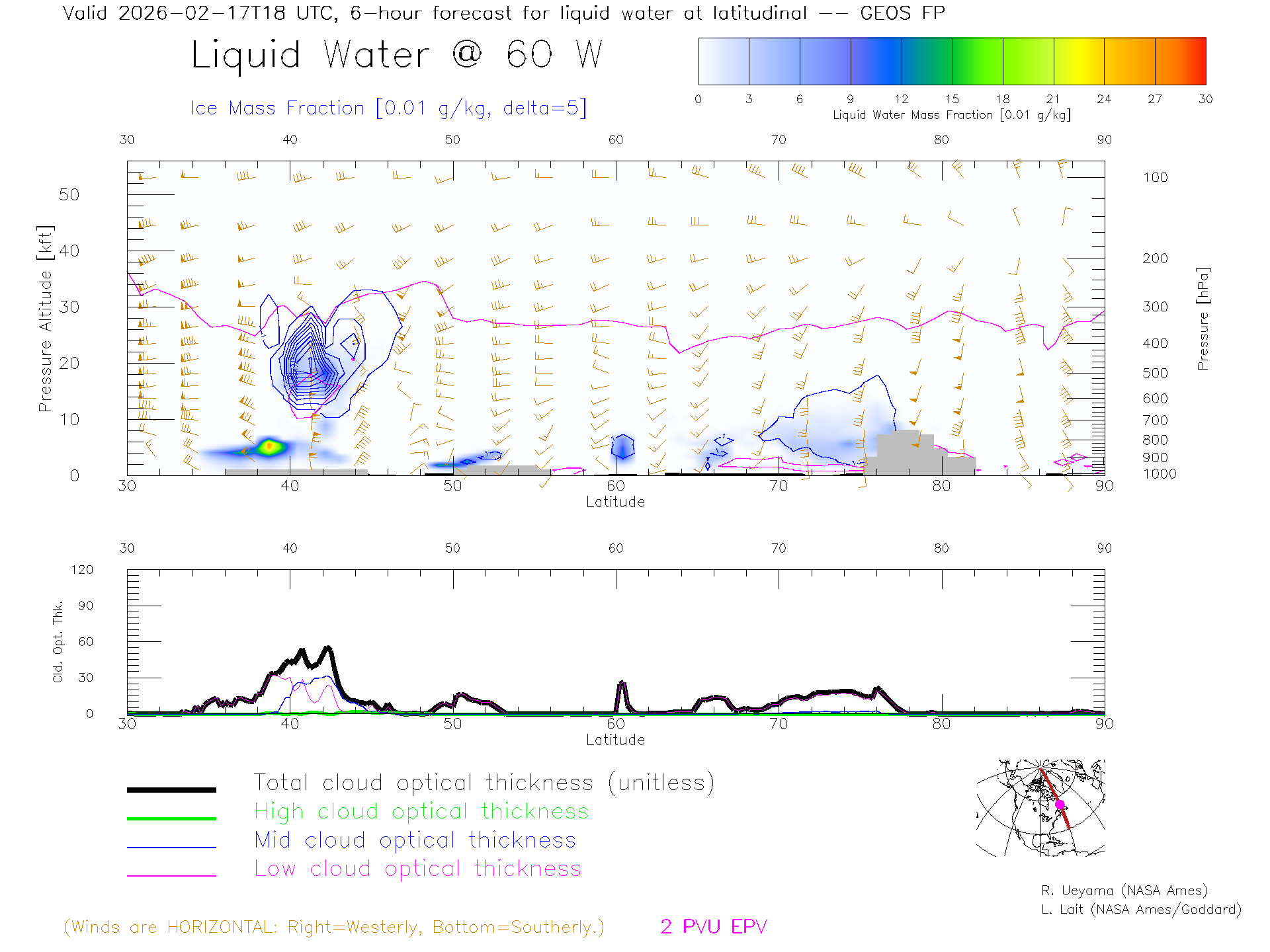GEOS Forecast Cloud Water Content X-Section (60 W)