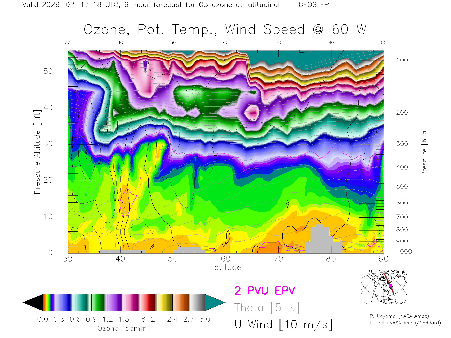 GEOS Forecast Ozone X-Section (60 W)