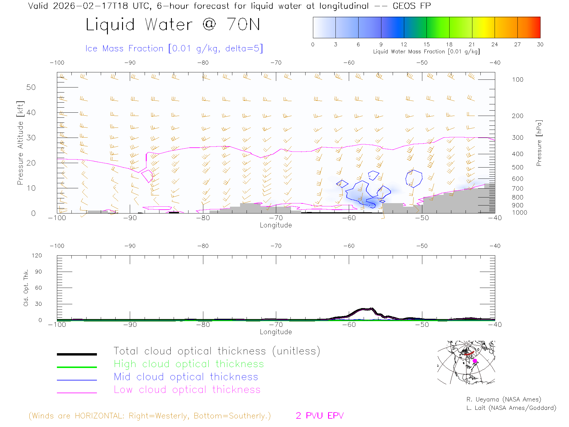 GEOS Forecast Cloud Water Content X-Section (70 N)