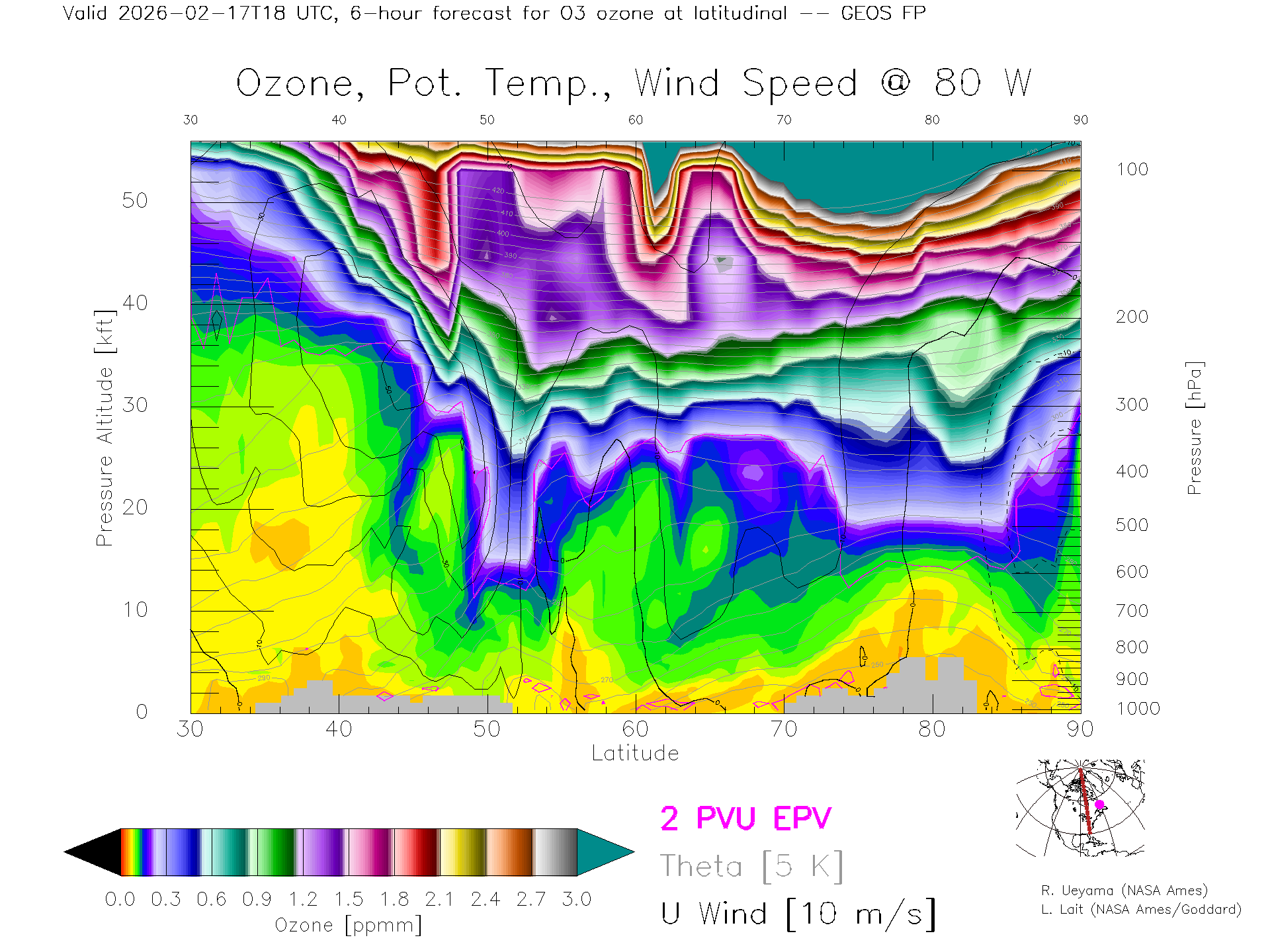 GEOS Forecast Ozone X-Section (80 W)