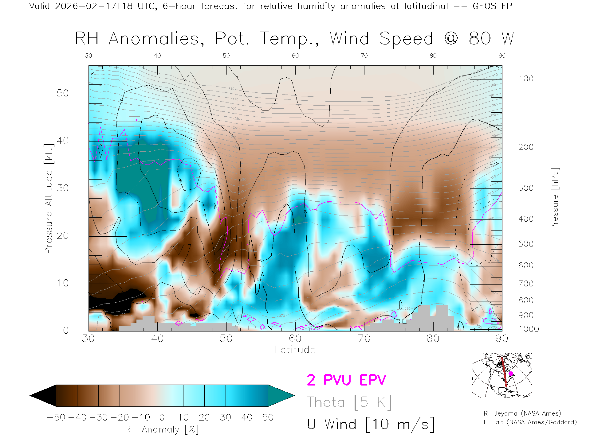 GEOS Forecast Rel. Hum. X-Section (80 W)