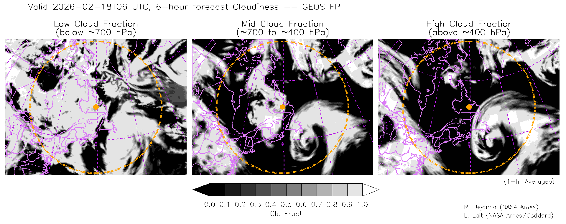 GEOS Forecast Cloud Fraction (High, Mid, Low)