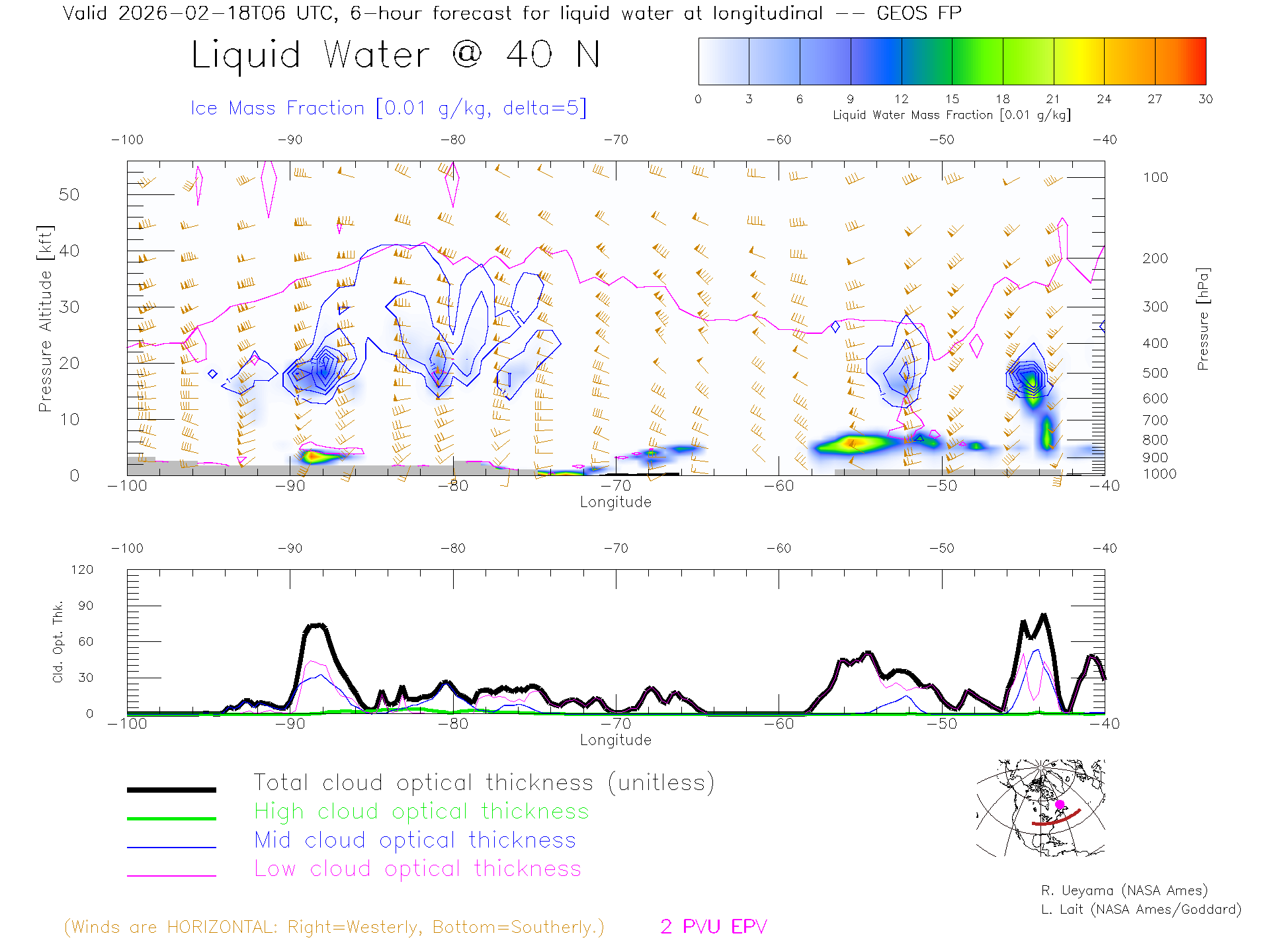 GEOS Forecast Cloud Water Content X-Section (40 N)