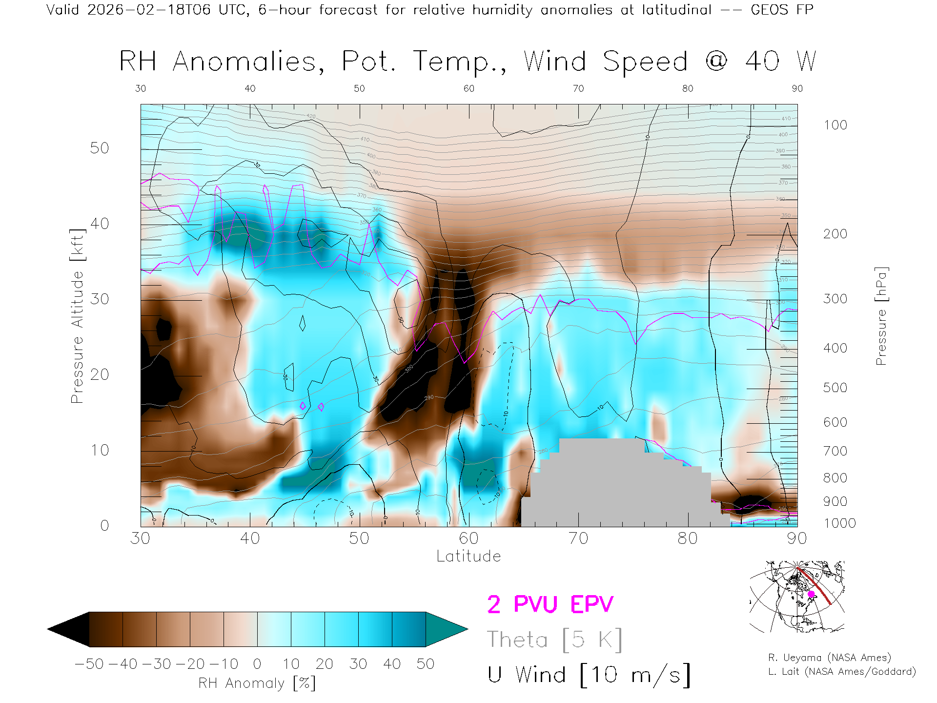 GEOS Forecast Rel. Hum. X-Section (40 W)