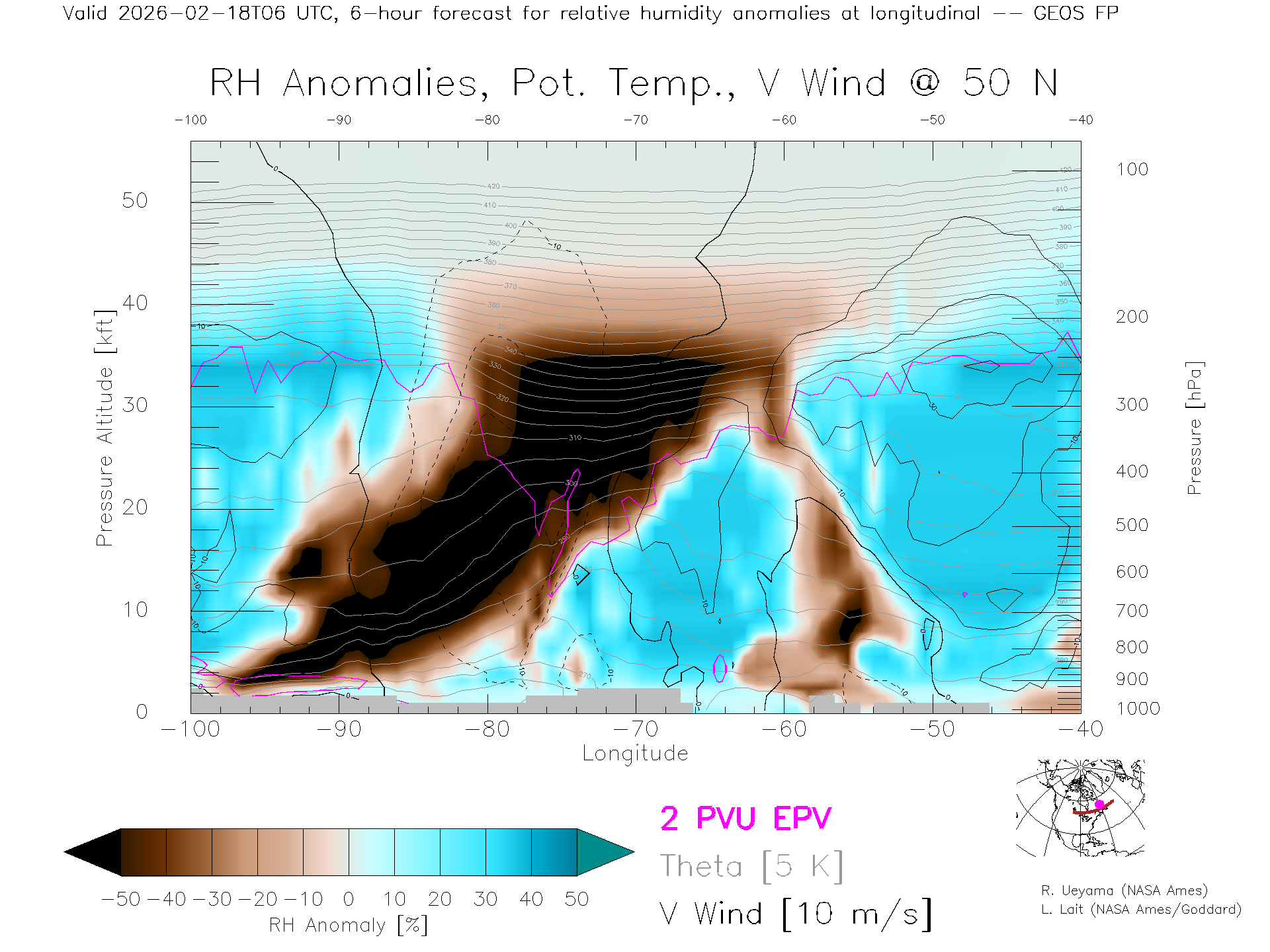 GEOS Forecast Rel. Hum. X-Section (50 N)