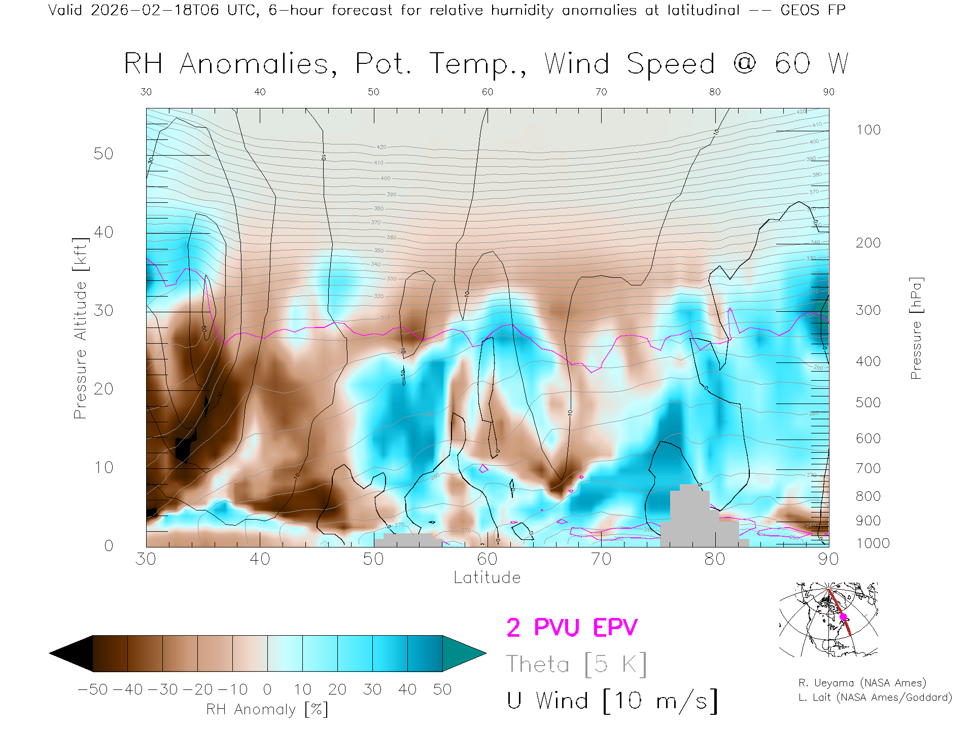 GEOS Forecast Rel. Hum. X-Section (60 W)