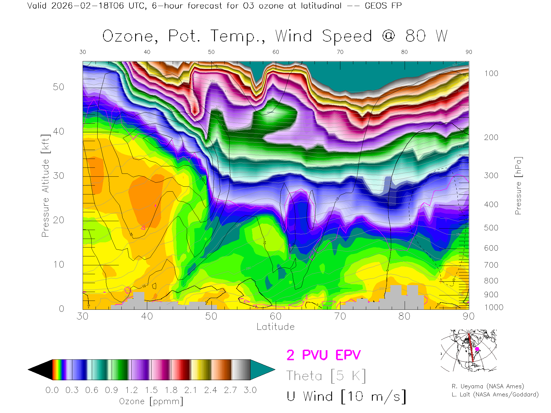 GEOS Forecast Ozone X-Section (80 W)