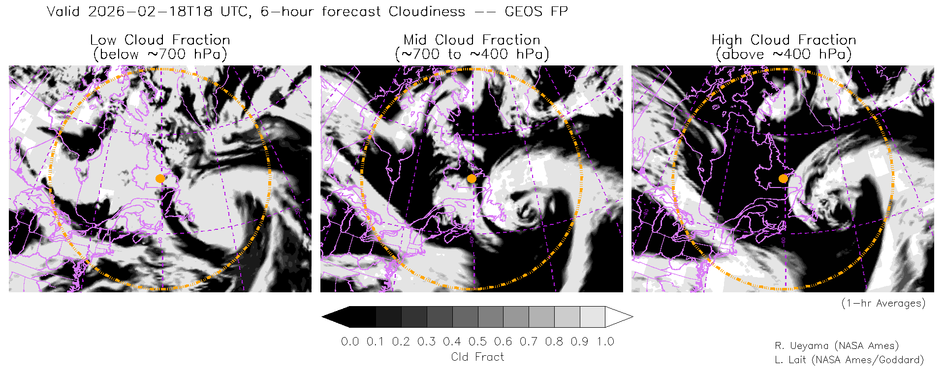 GEOS Forecast Cloud Fraction (High, Mid, Low)