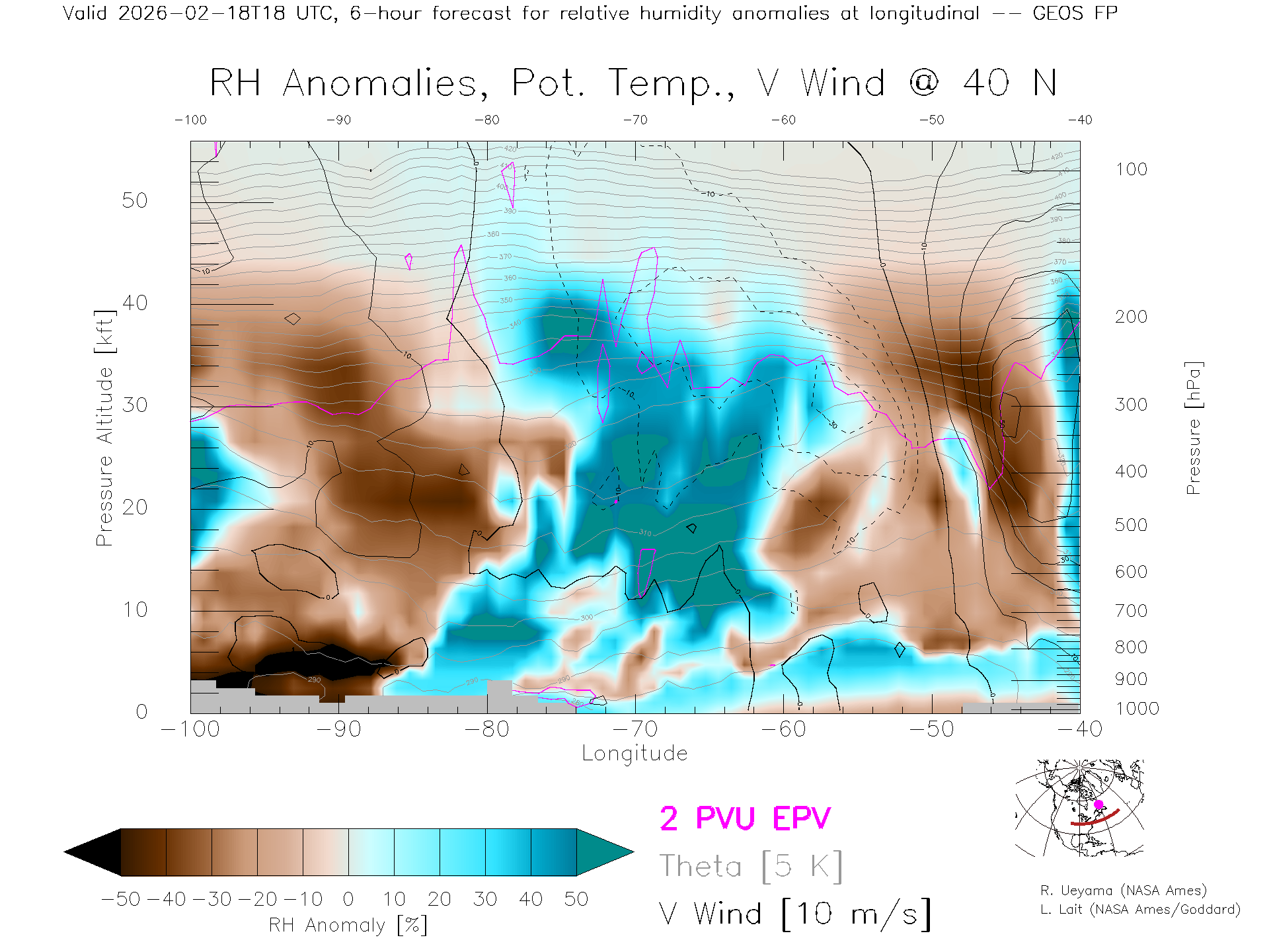 GEOS Forecast Rel. Hum. X-Section (40 N)