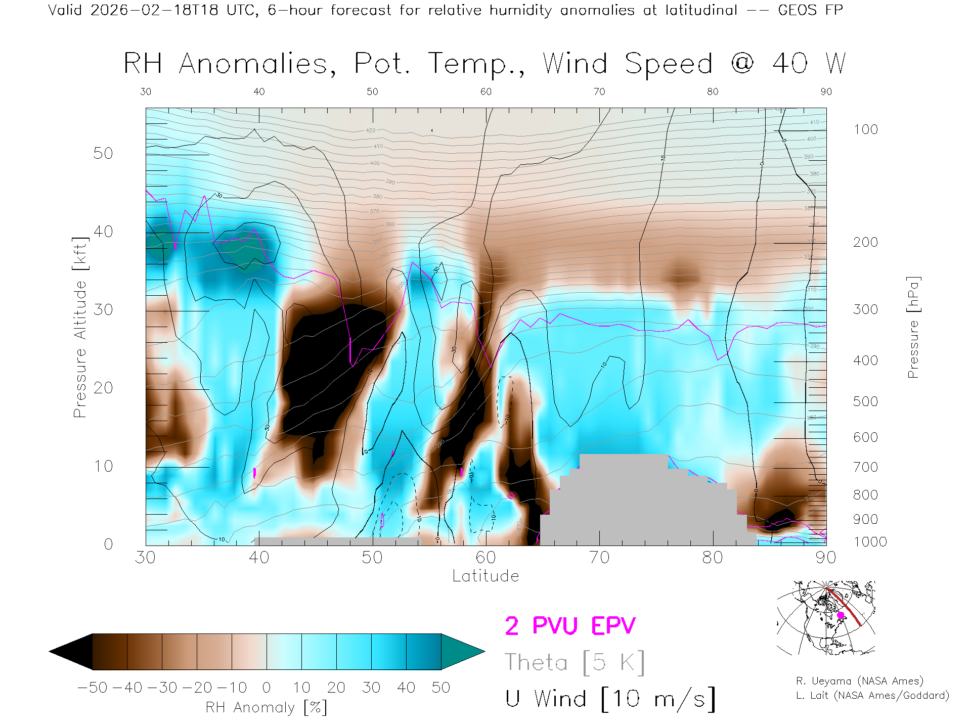 GEOS Forecast Rel. Hum. X-Section (40 W)