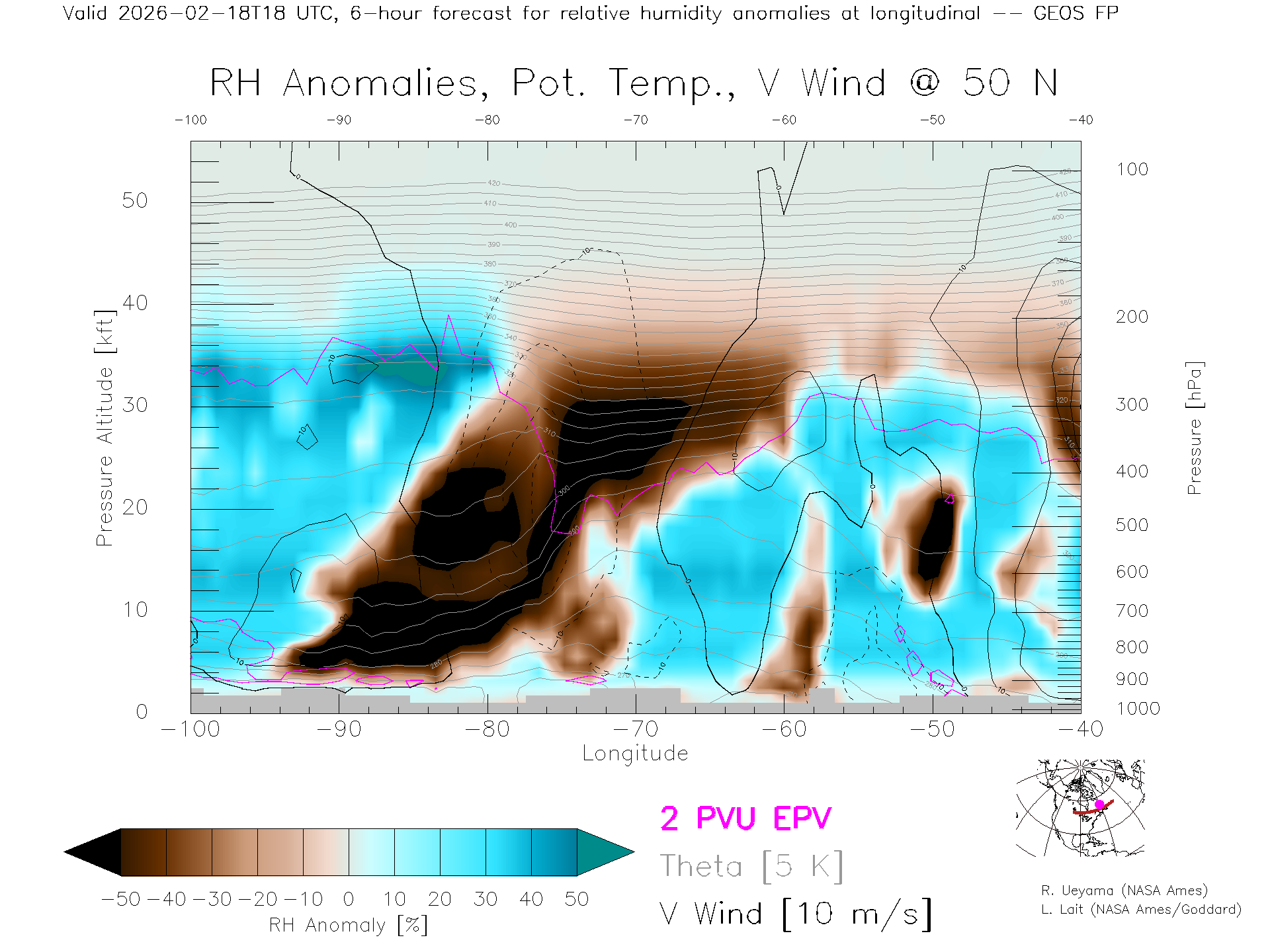 GEOS Forecast Rel. Hum. X-Section (50 N)