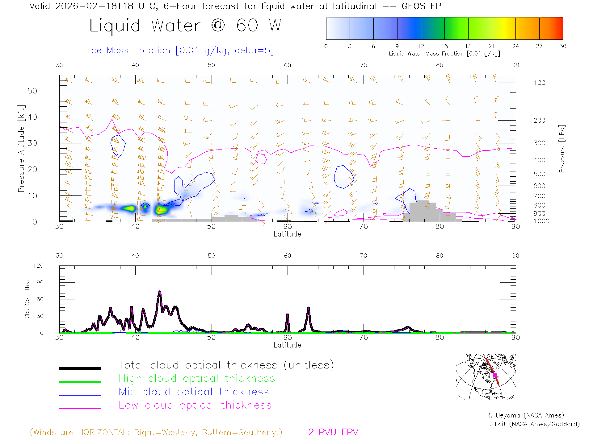 GEOS Forecast Cloud Water Content X-Section (60 W)