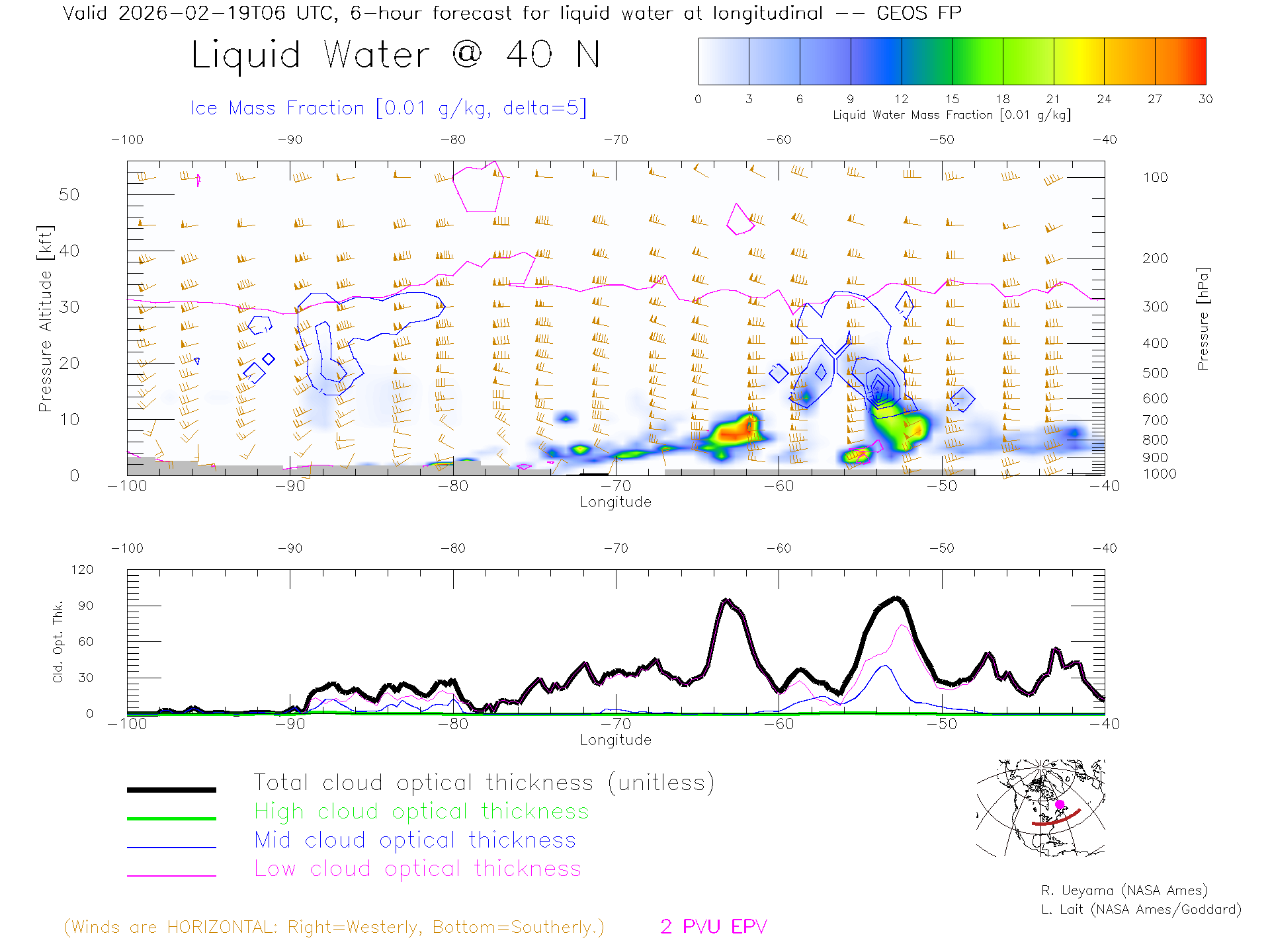 GEOS Forecast Cloud Water Content X-Section (40 N)