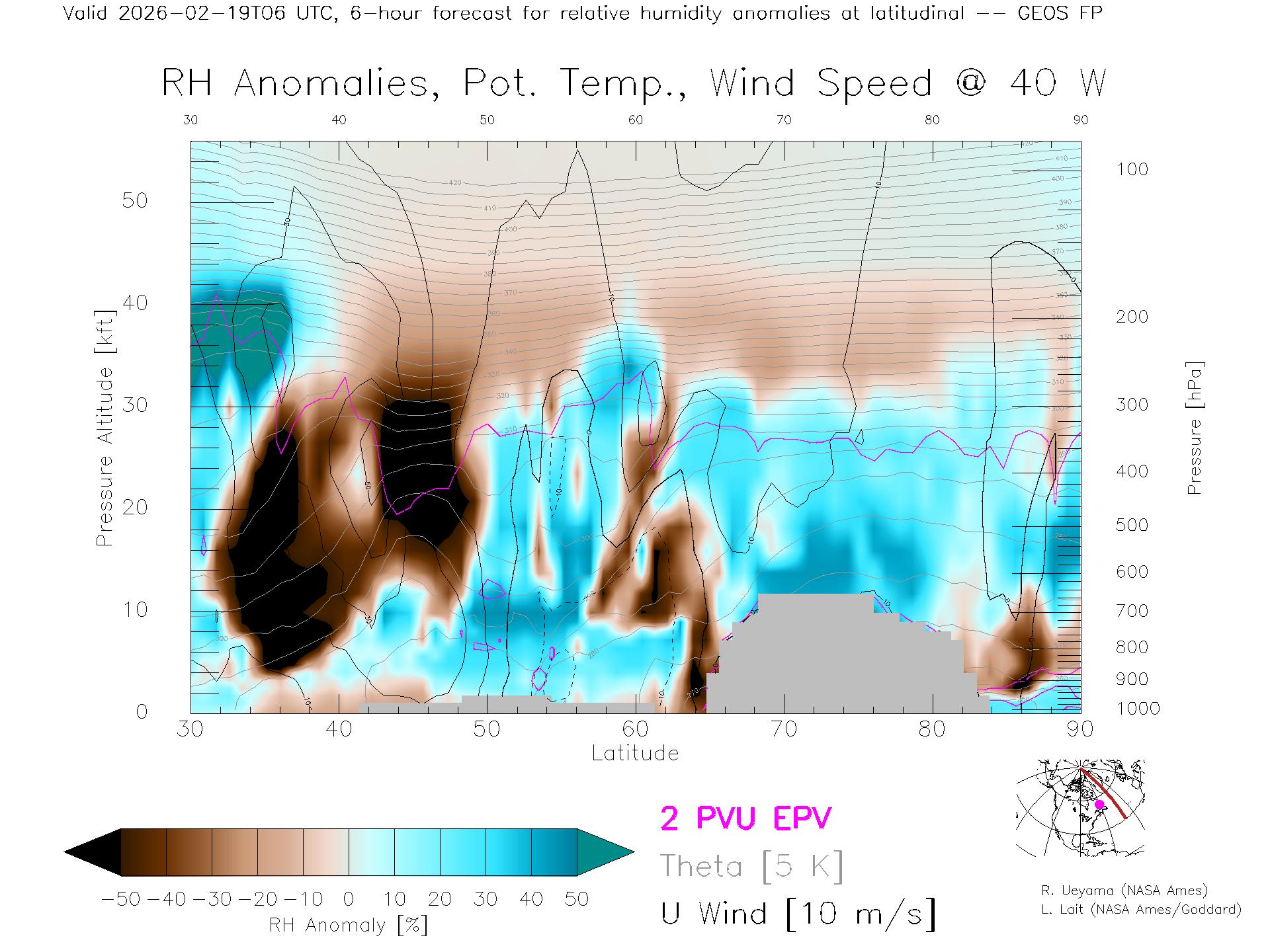 GEOS Forecast Rel. Hum. X-Section (40 W)