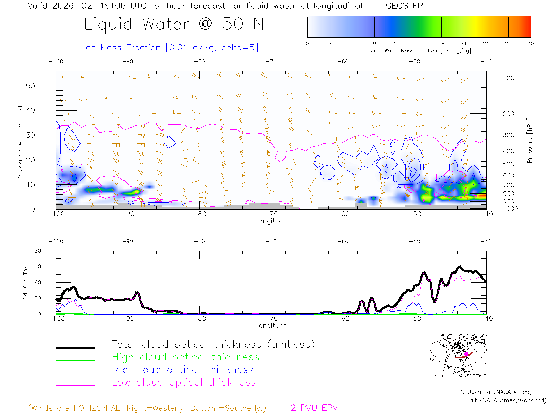 GEOS Forecast Cloud Water Content X-Section (50 N)