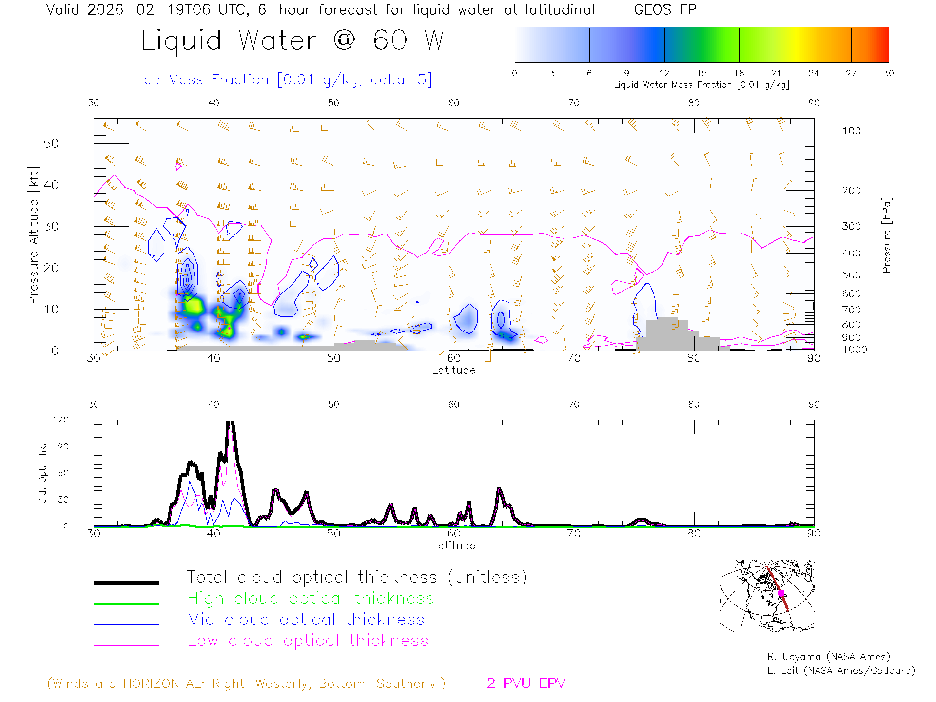 GEOS Forecast Cloud Water Content X-Section (60 W)