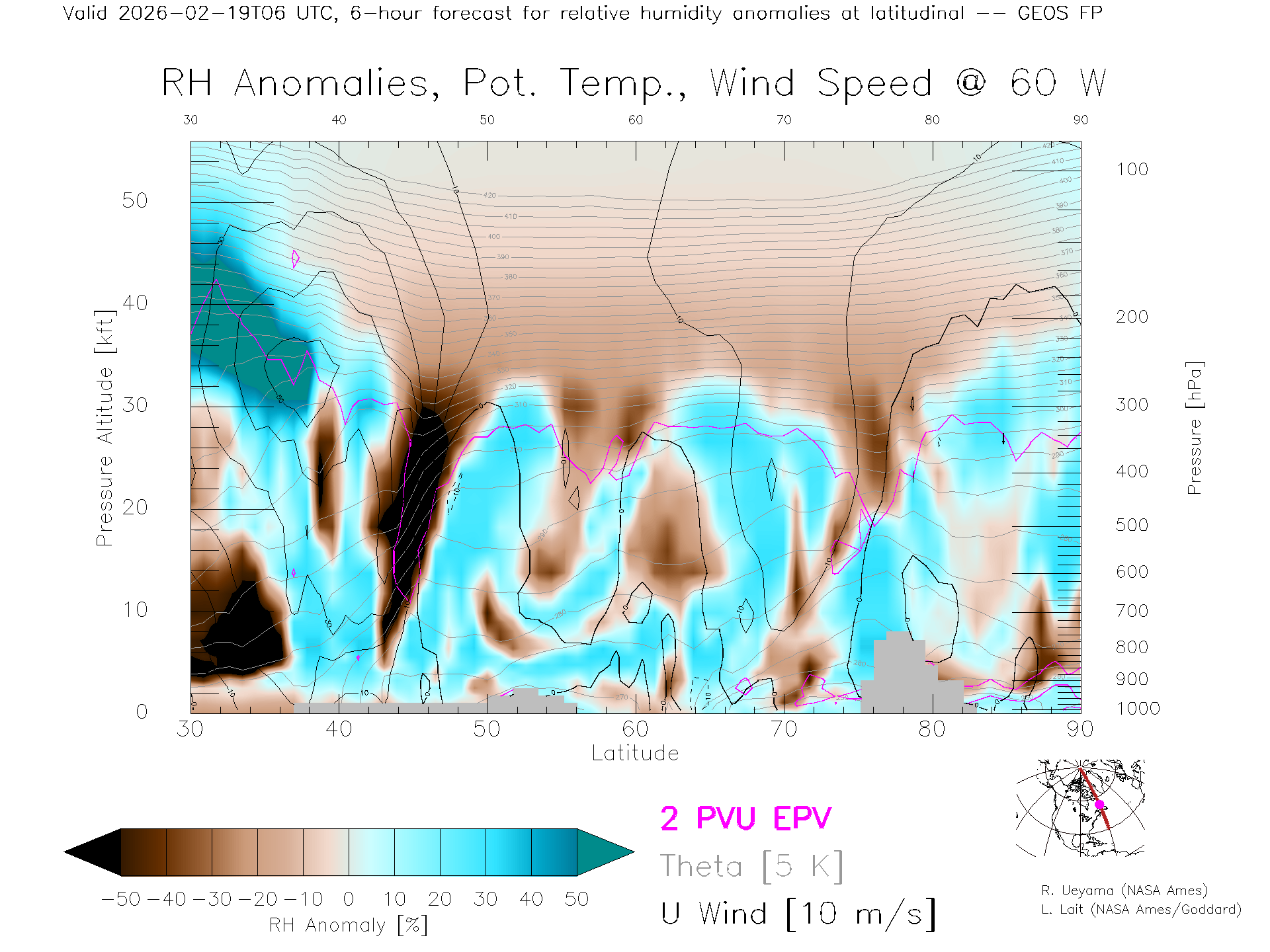 GEOS Forecast Rel. Hum. X-Section (60 W)