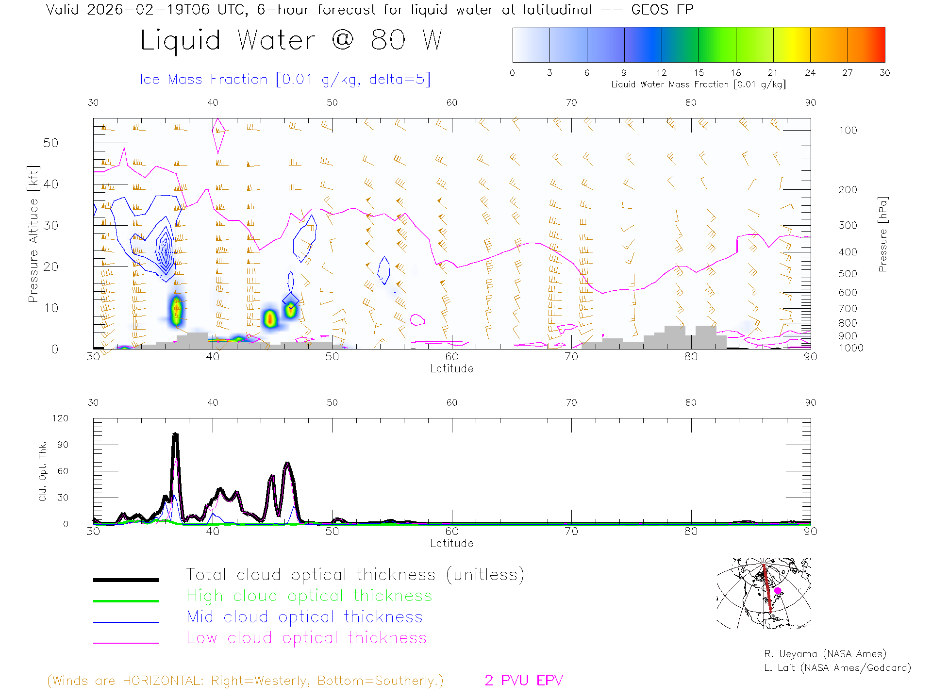 GEOS Forecast Cloud Water Content X-Section (80 W)