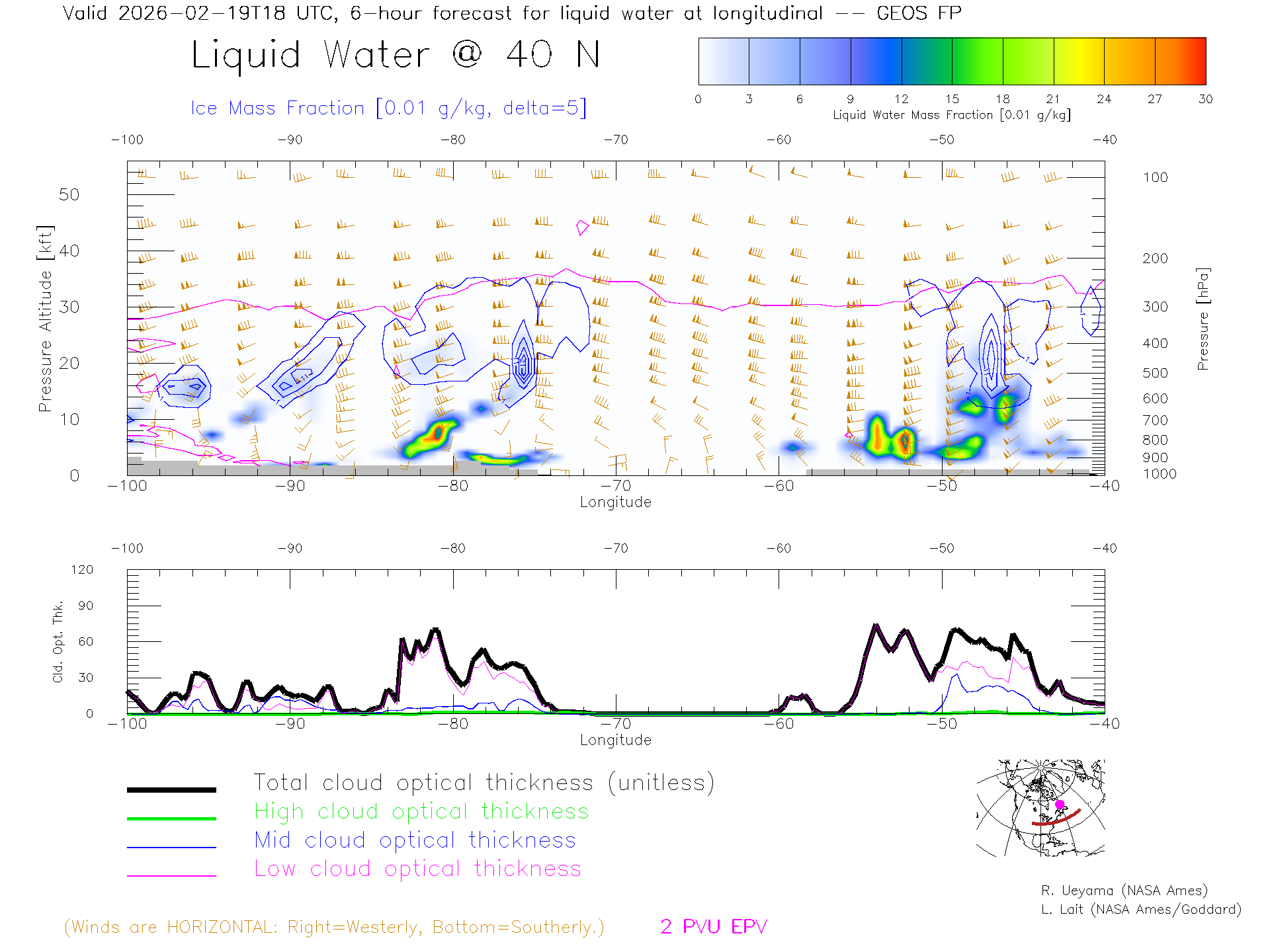 GEOS Forecast Cloud Water Content X-Section (40 N)