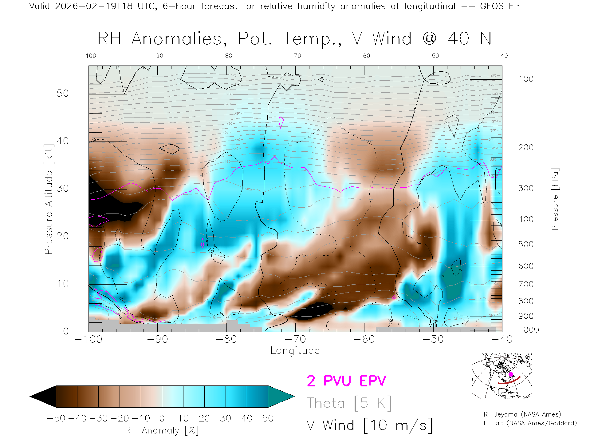 GEOS Forecast Rel. Hum. X-Section (40 N)