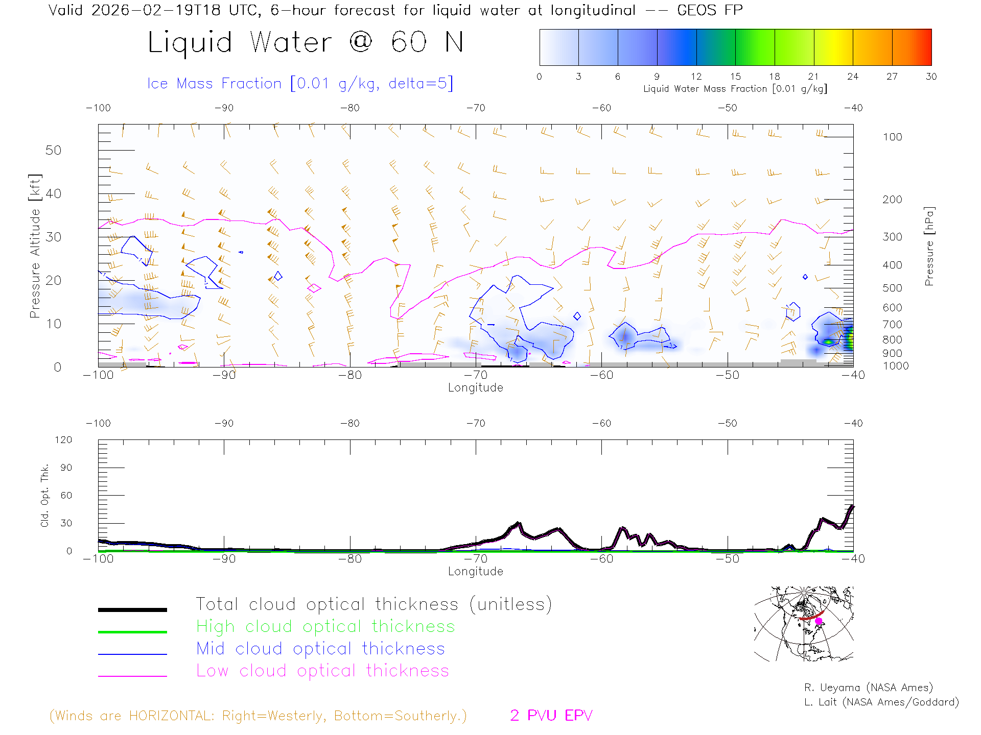 GEOS Forecast Cloud Water Content X-Section (60 N)