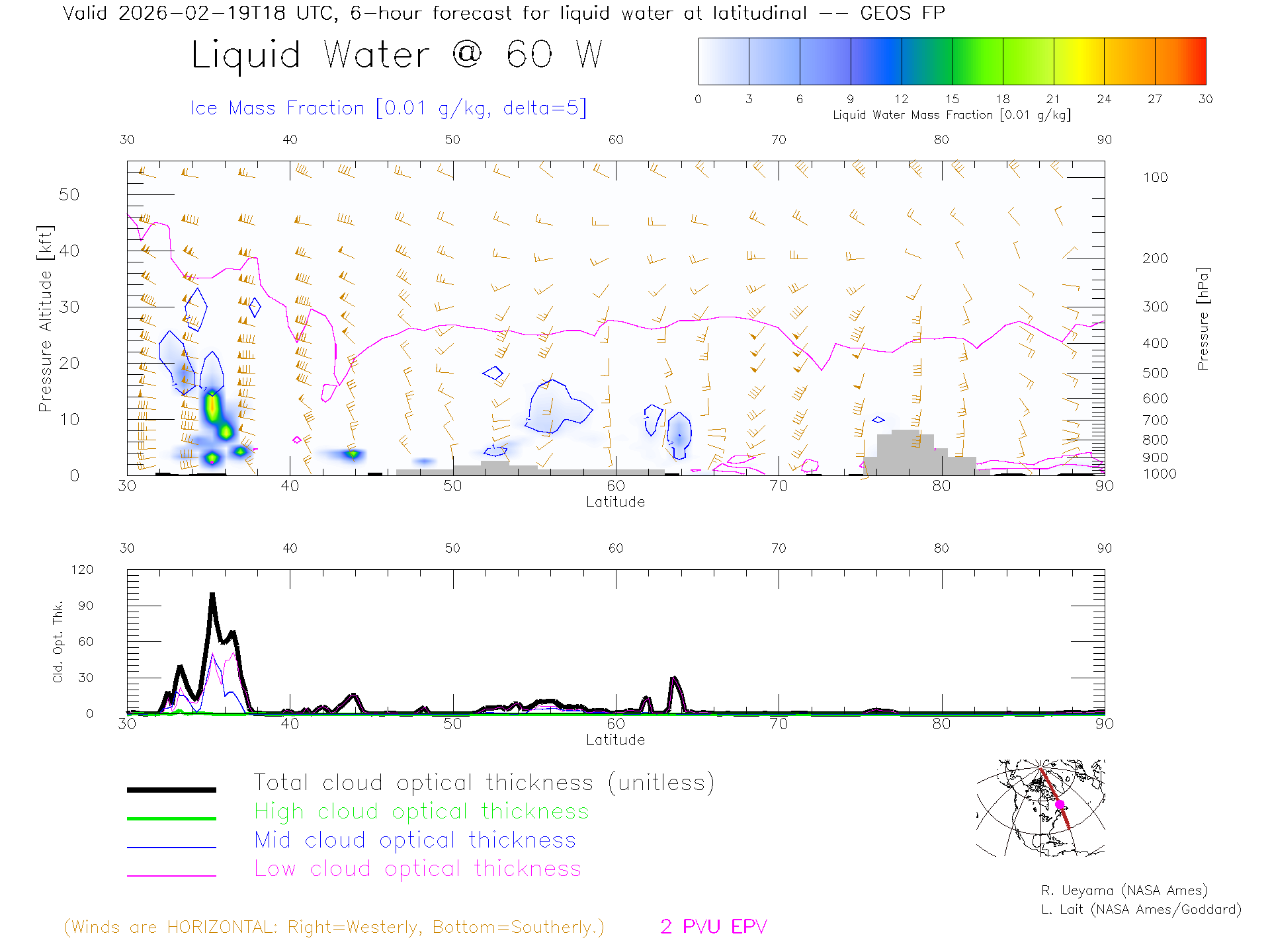 GEOS Forecast Cloud Water Content X-Section (60 W)