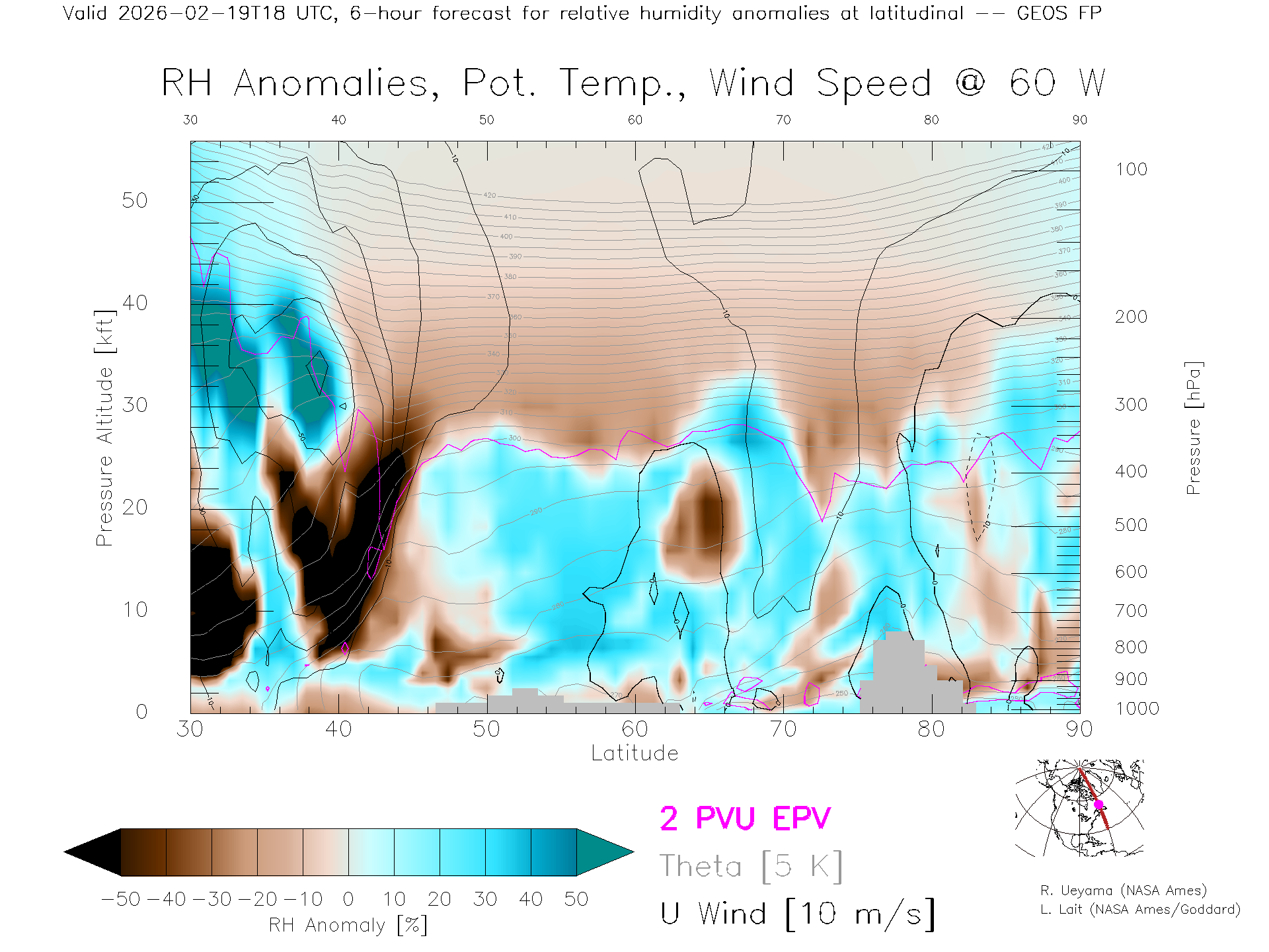 GEOS Forecast Rel. Hum. X-Section (60 W)