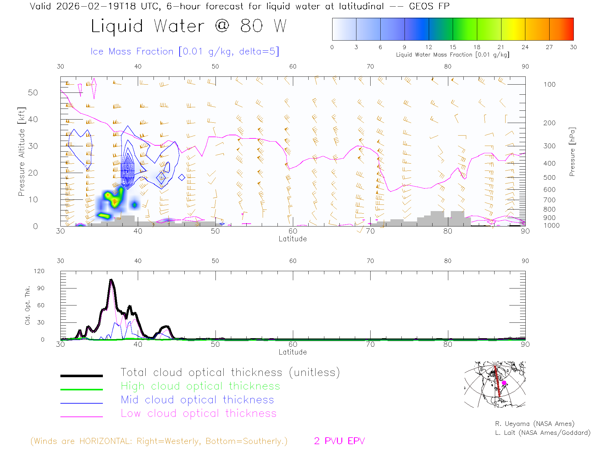 GEOS Forecast Cloud Water Content X-Section (80 W)