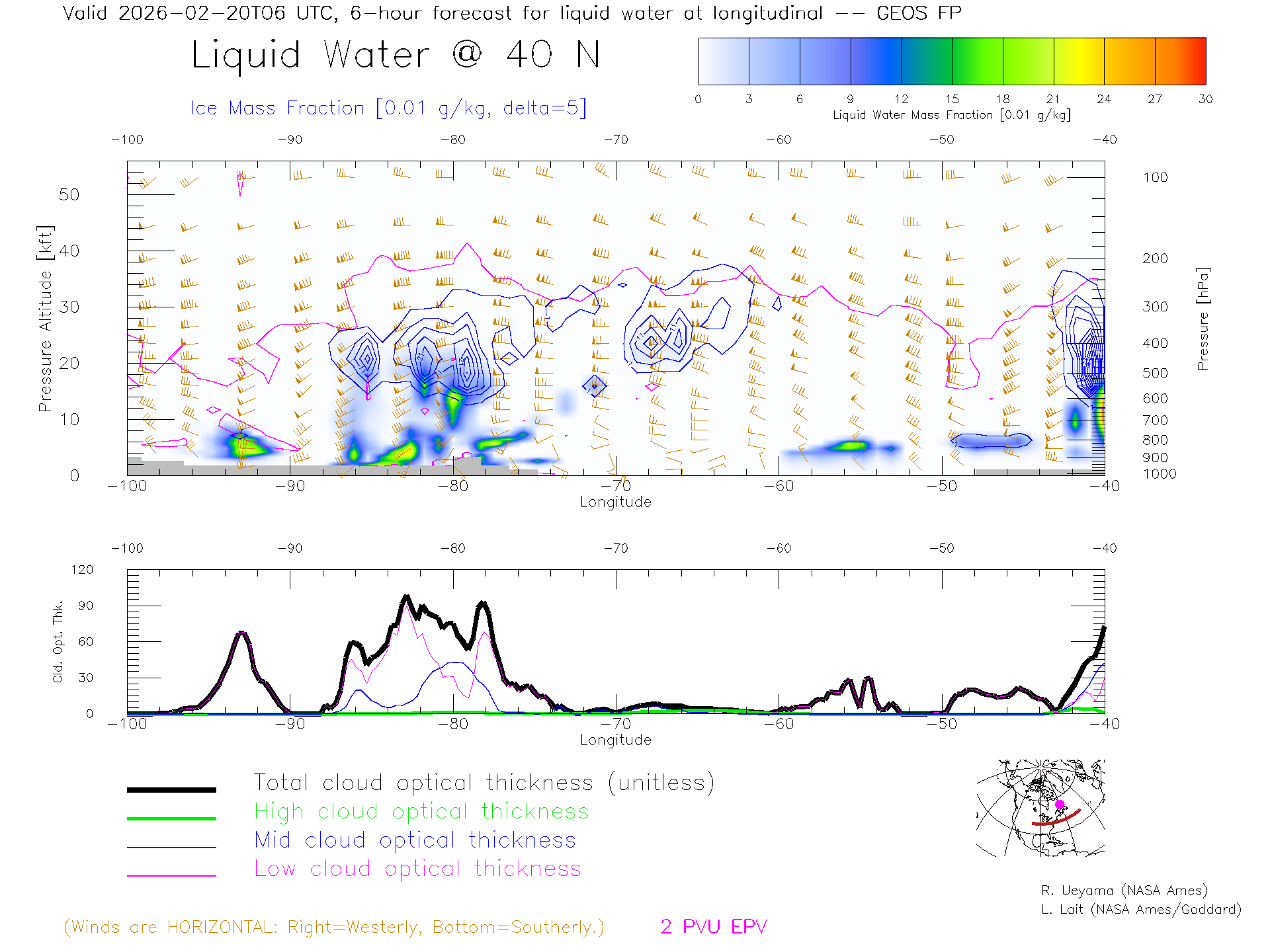 GEOS Forecast Cloud Water Content X-Section (40 N)