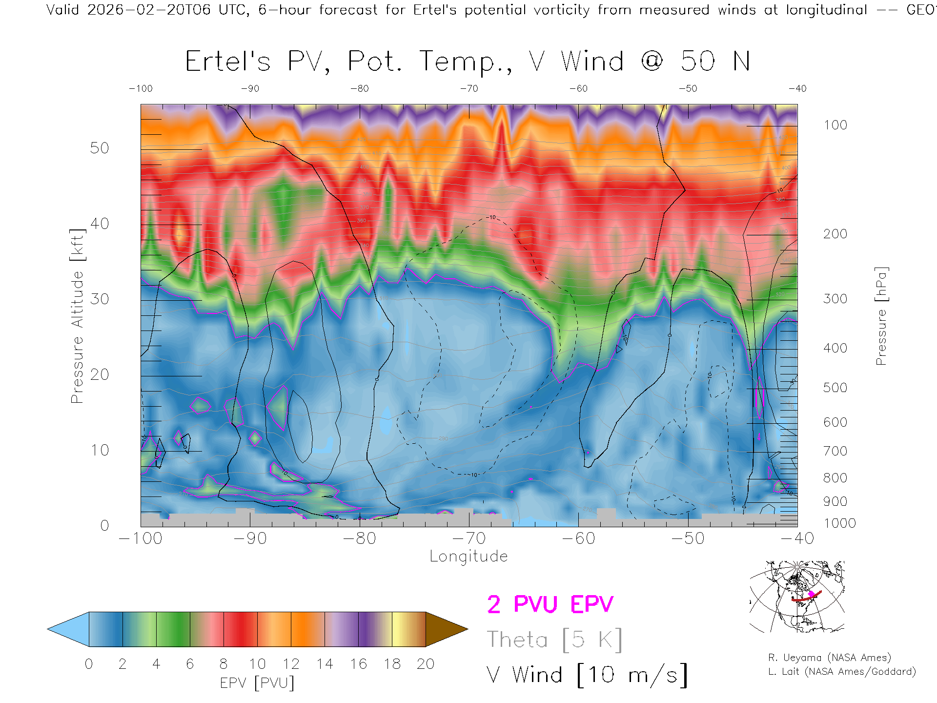 GEOS Forecast PV X-Section (50 N)