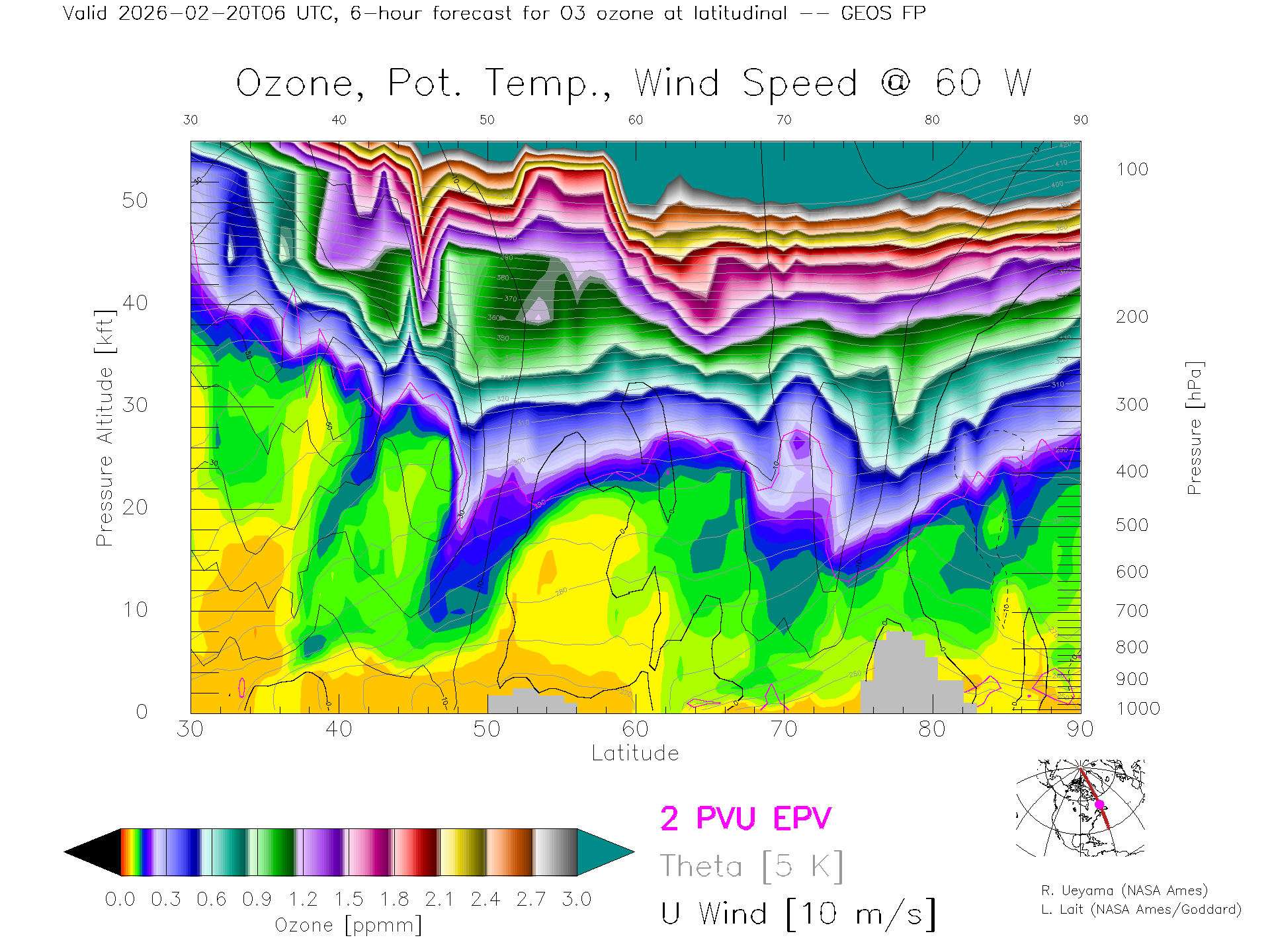 GEOS Forecast Ozone X-Section (60 W)