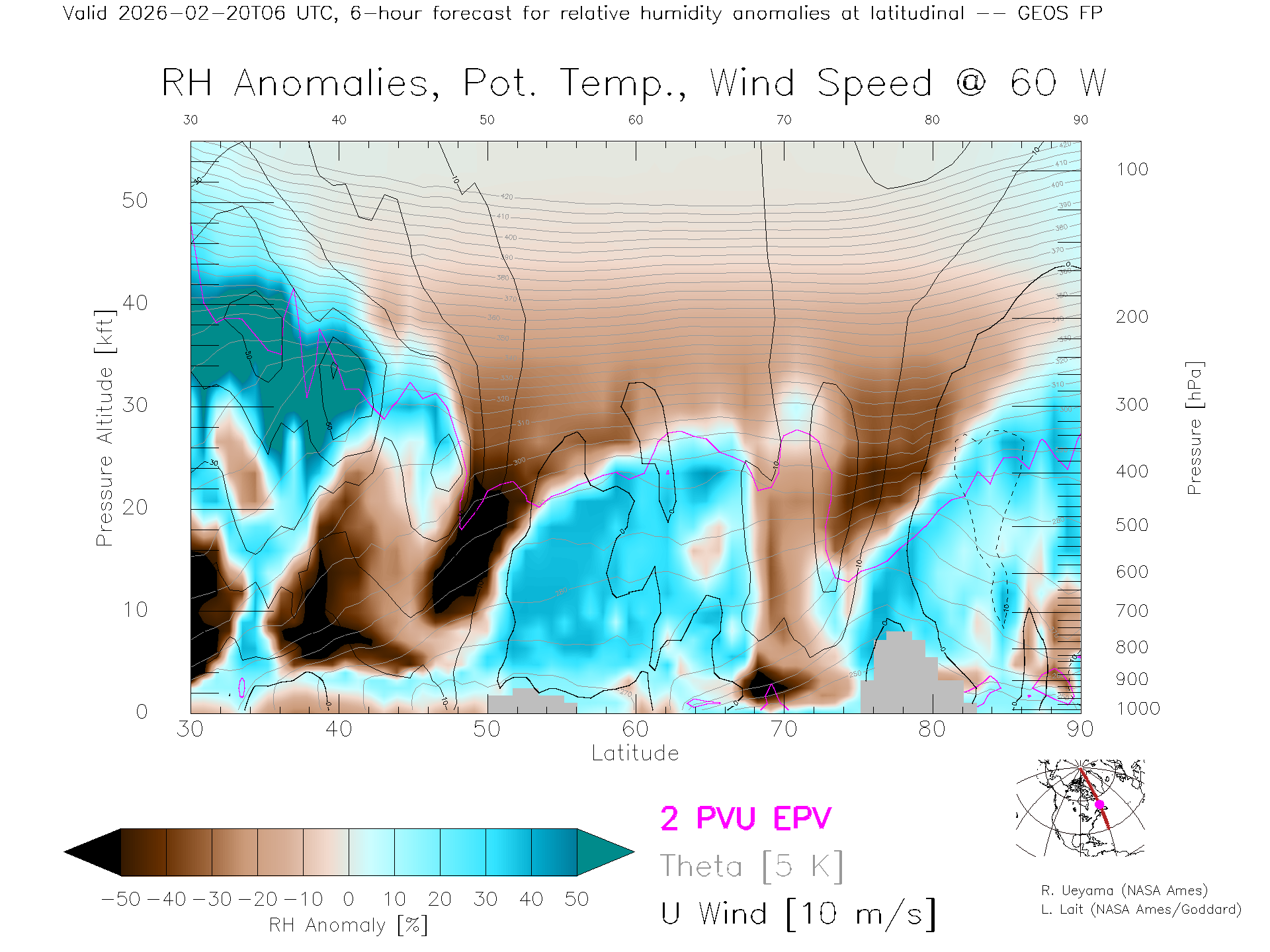 GEOS Forecast Rel. Hum. X-Section (60 W)