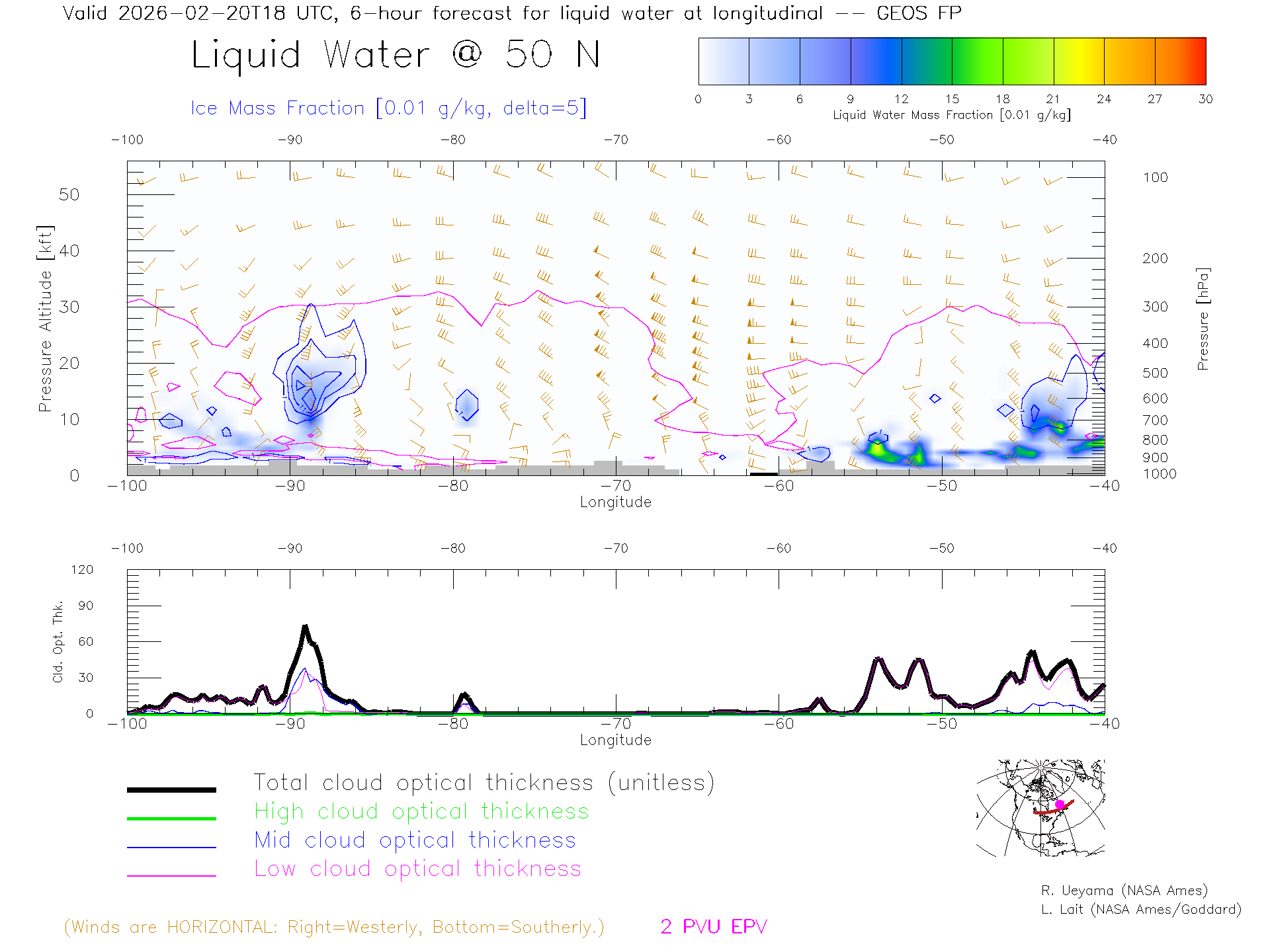 GEOS Forecast Cloud Water Content X-Section (50 N)