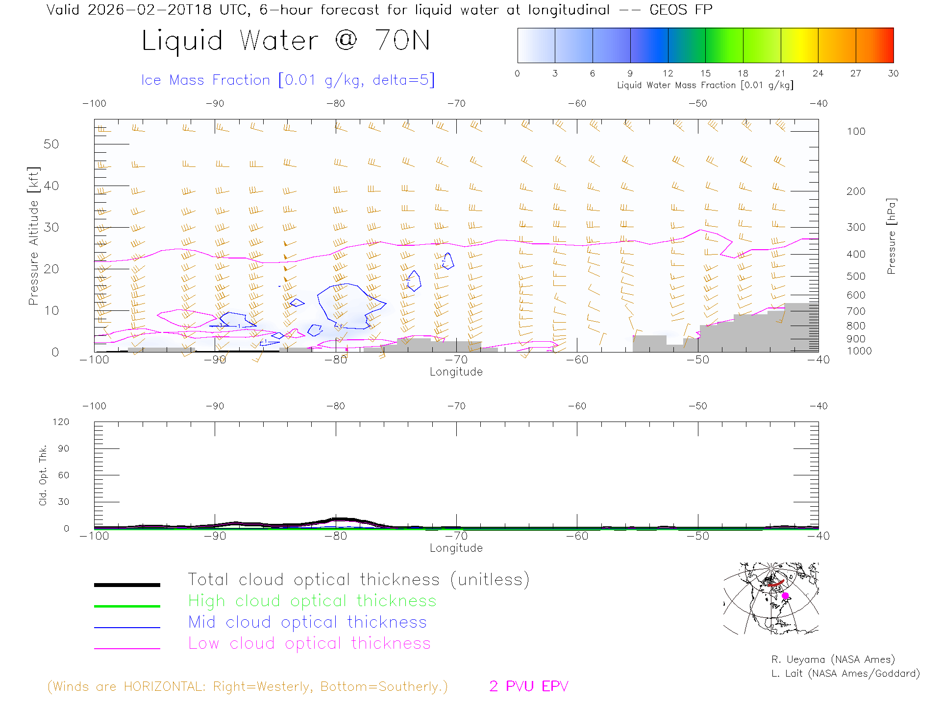 GEOS Forecast Cloud Water Content X-Section (70 N)