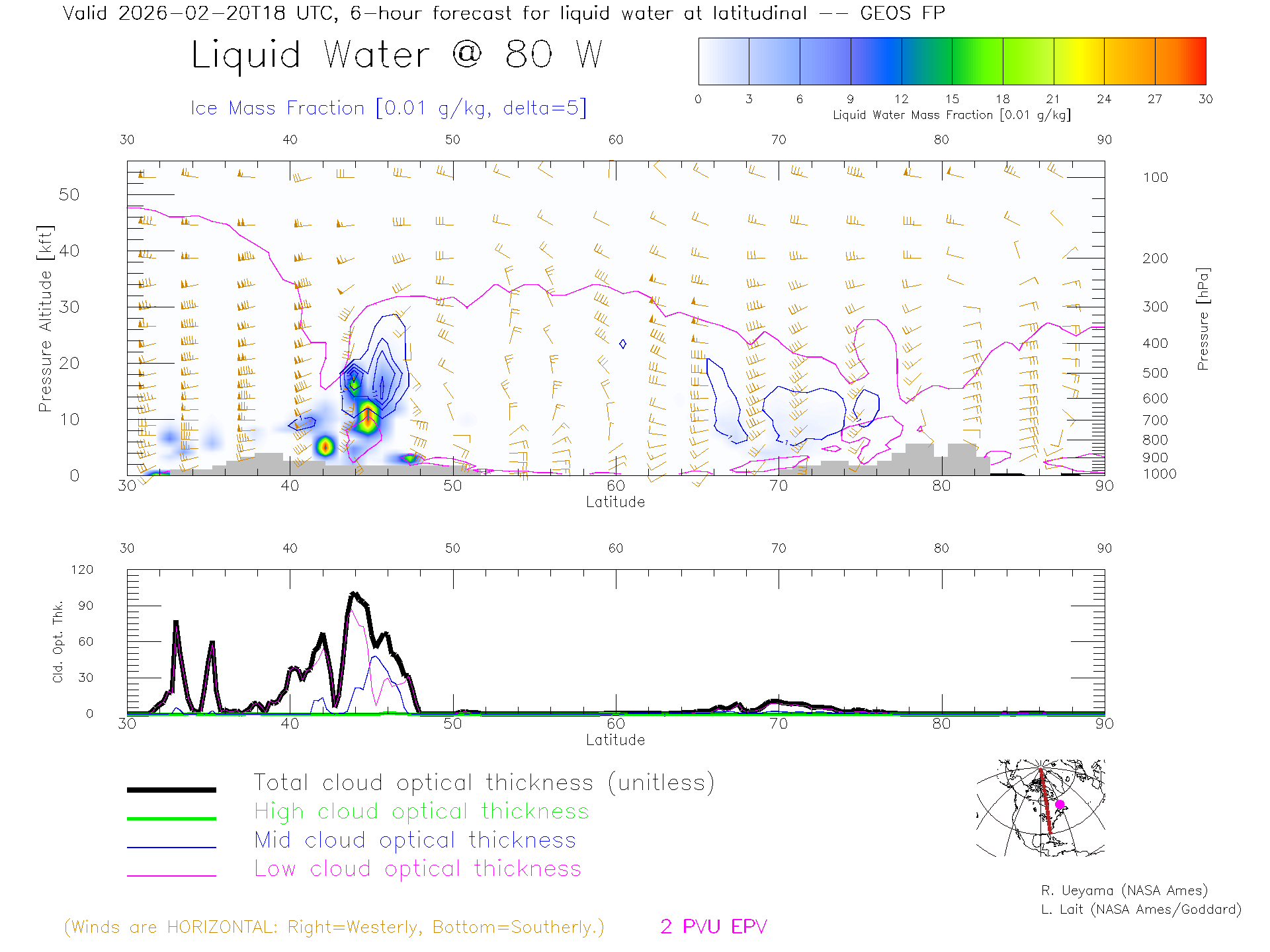 GEOS Forecast Cloud Water Content X-Section (80 W)