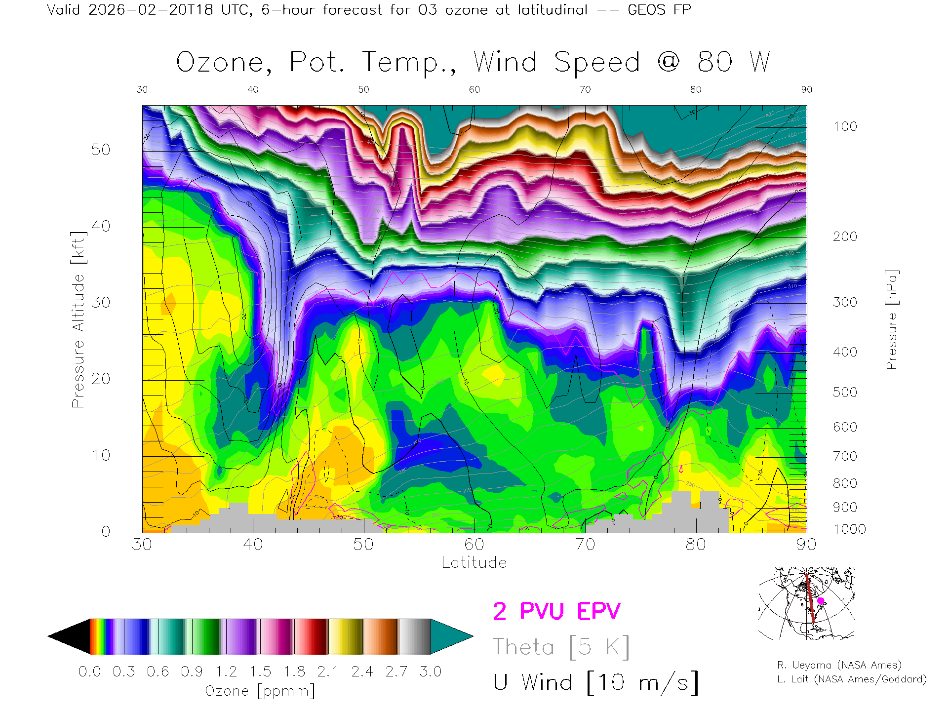 GEOS Forecast Ozone X-Section (80 W)