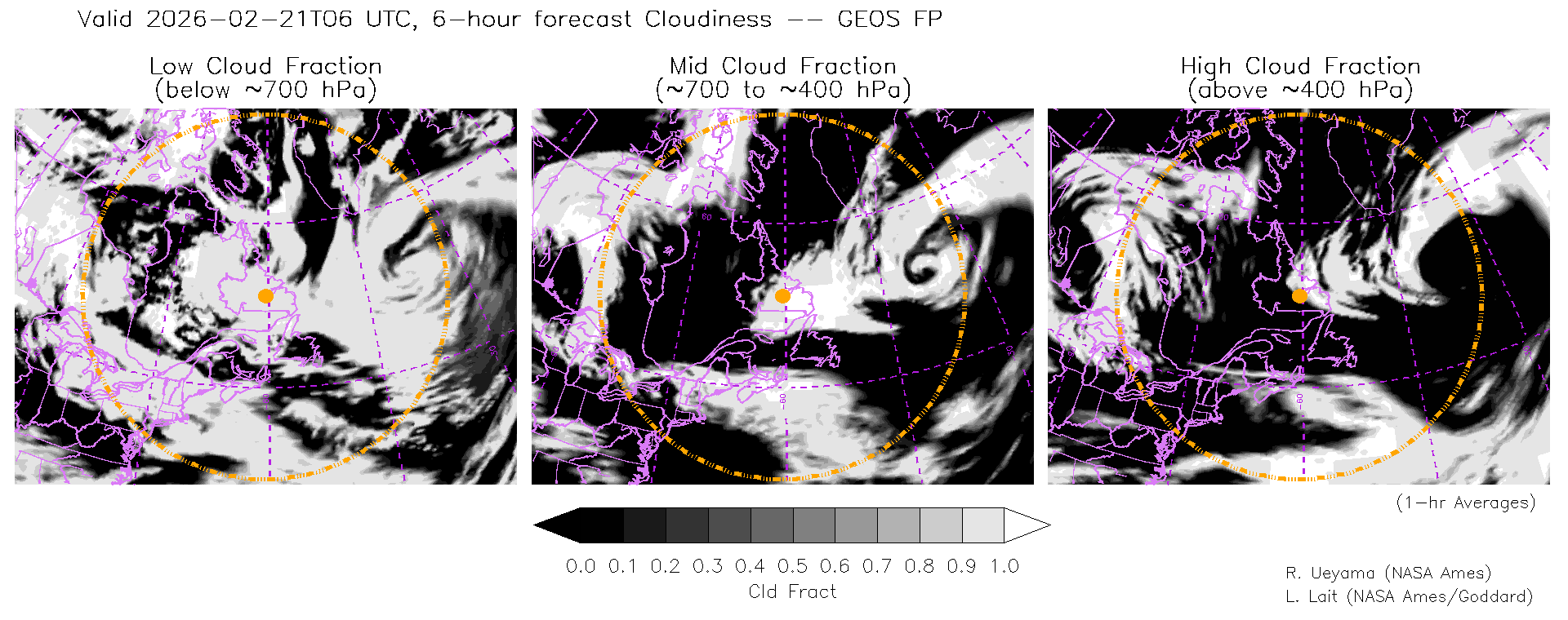 GEOS Forecast Cloud Fraction (High, Mid, Low)