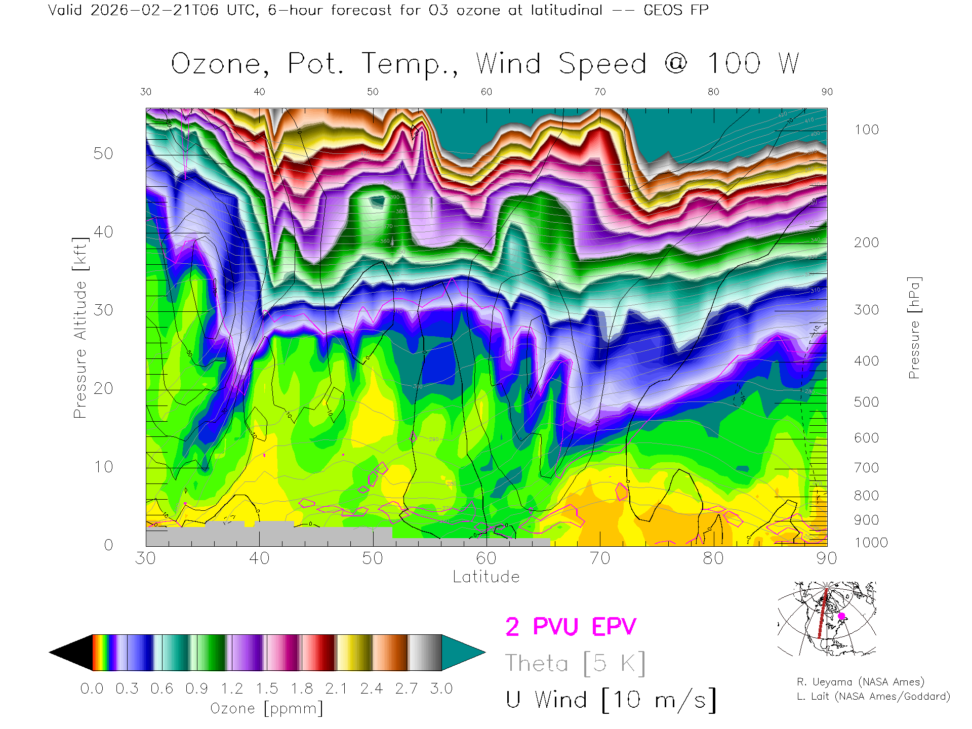 GEOS Forecast Ozone X-Section (100 W)