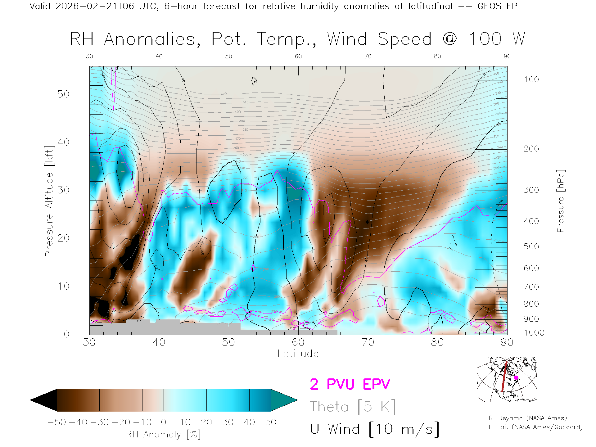 GEOS Forecast Rel. Hum. X-Section (100 W)