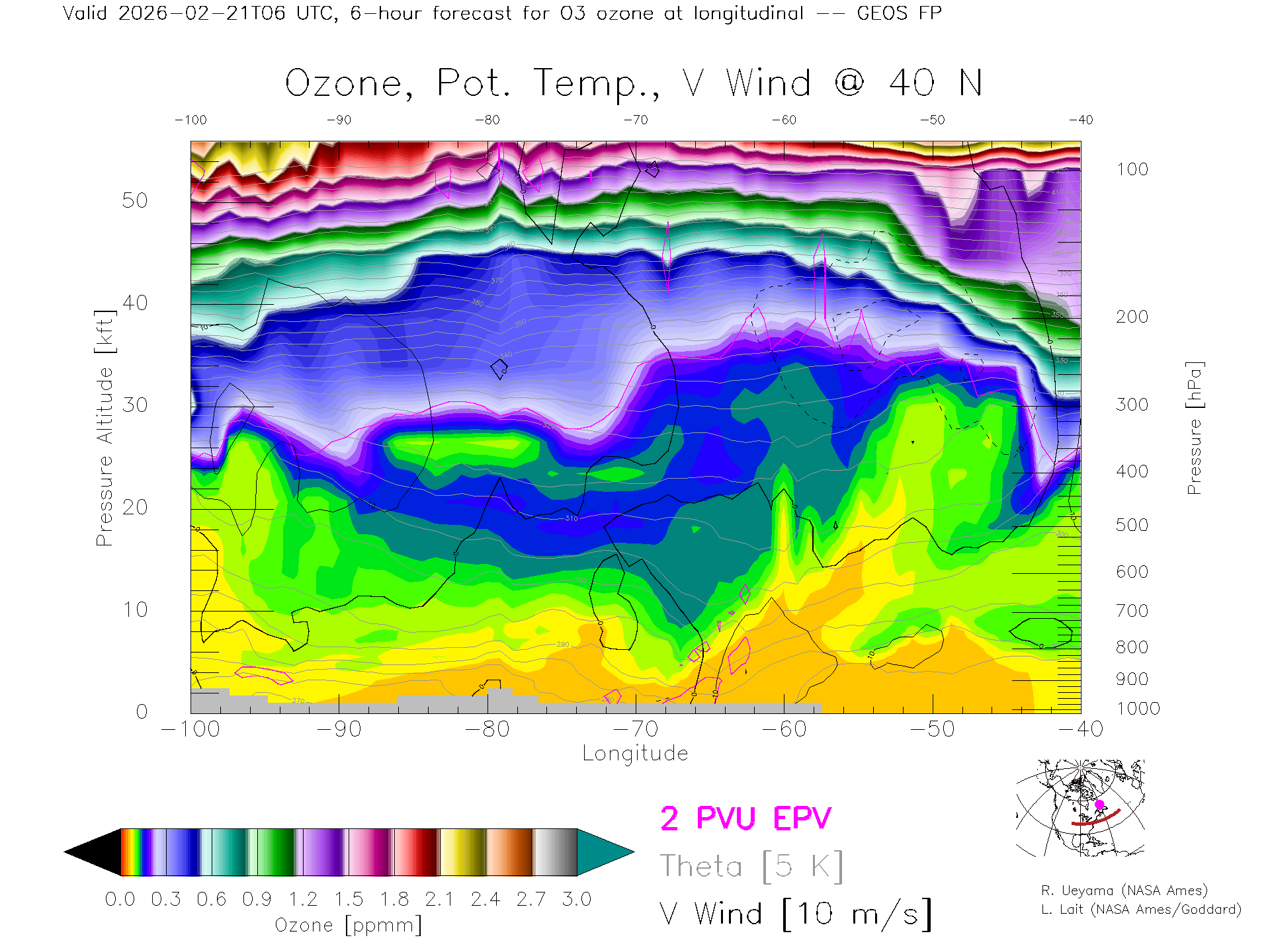 GEOS Forecast Ozone X-Section (40 N)