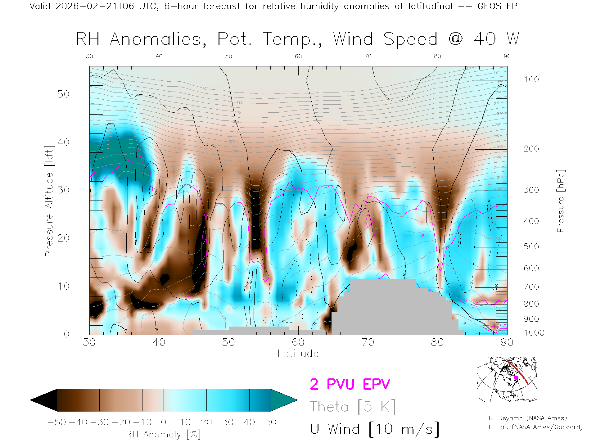 GEOS Forecast Rel. Hum. X-Section (40 W)