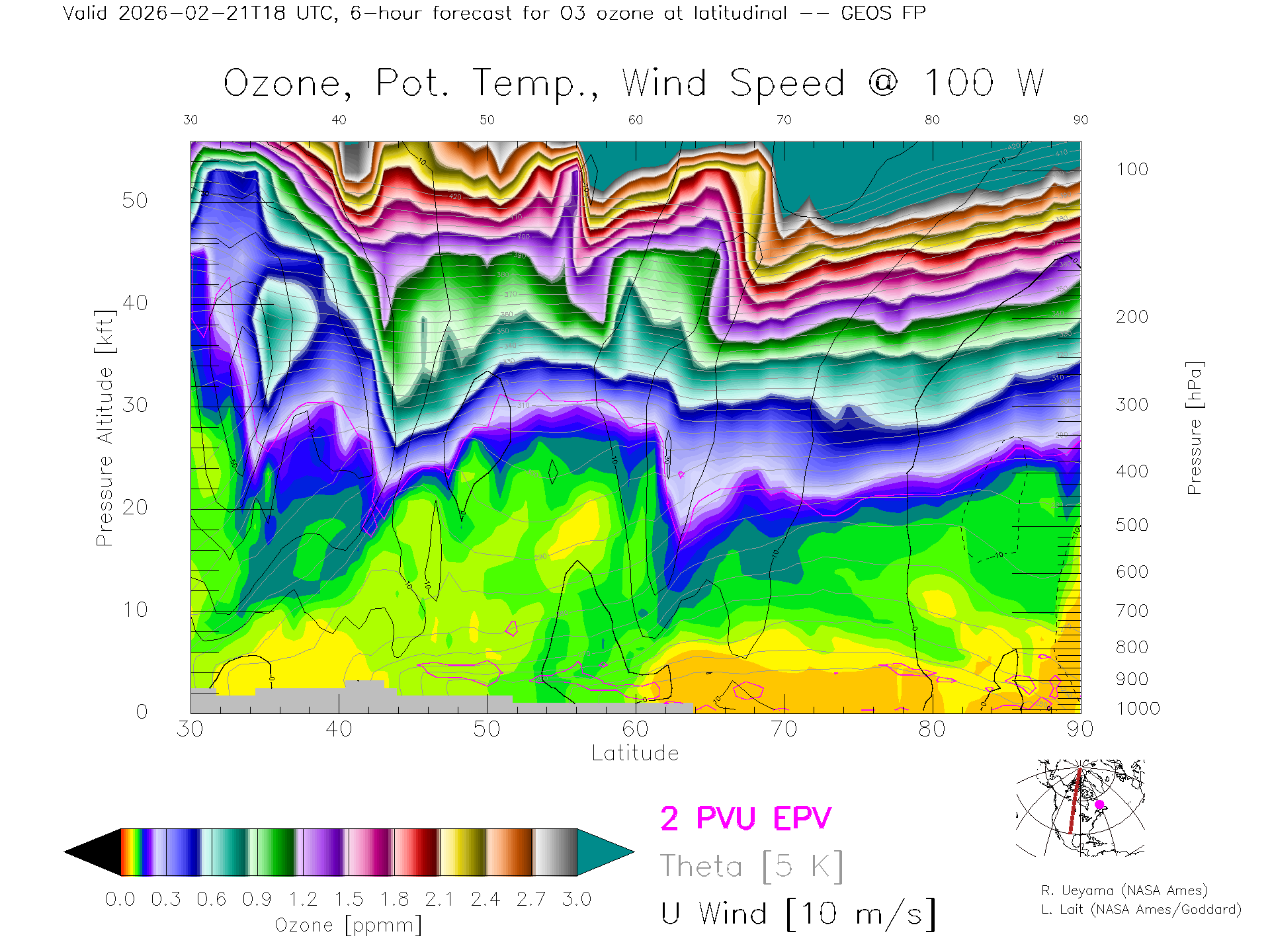 GEOS Forecast Ozone X-Section (100 W)