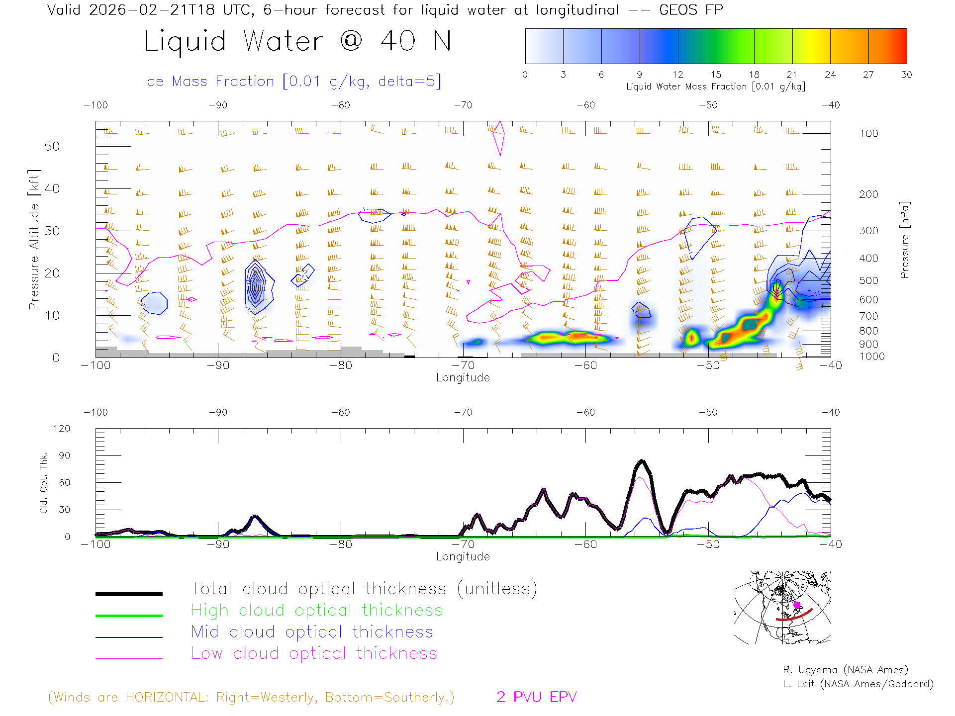 GEOS Forecast Cloud Water Content X-Section (40 N)