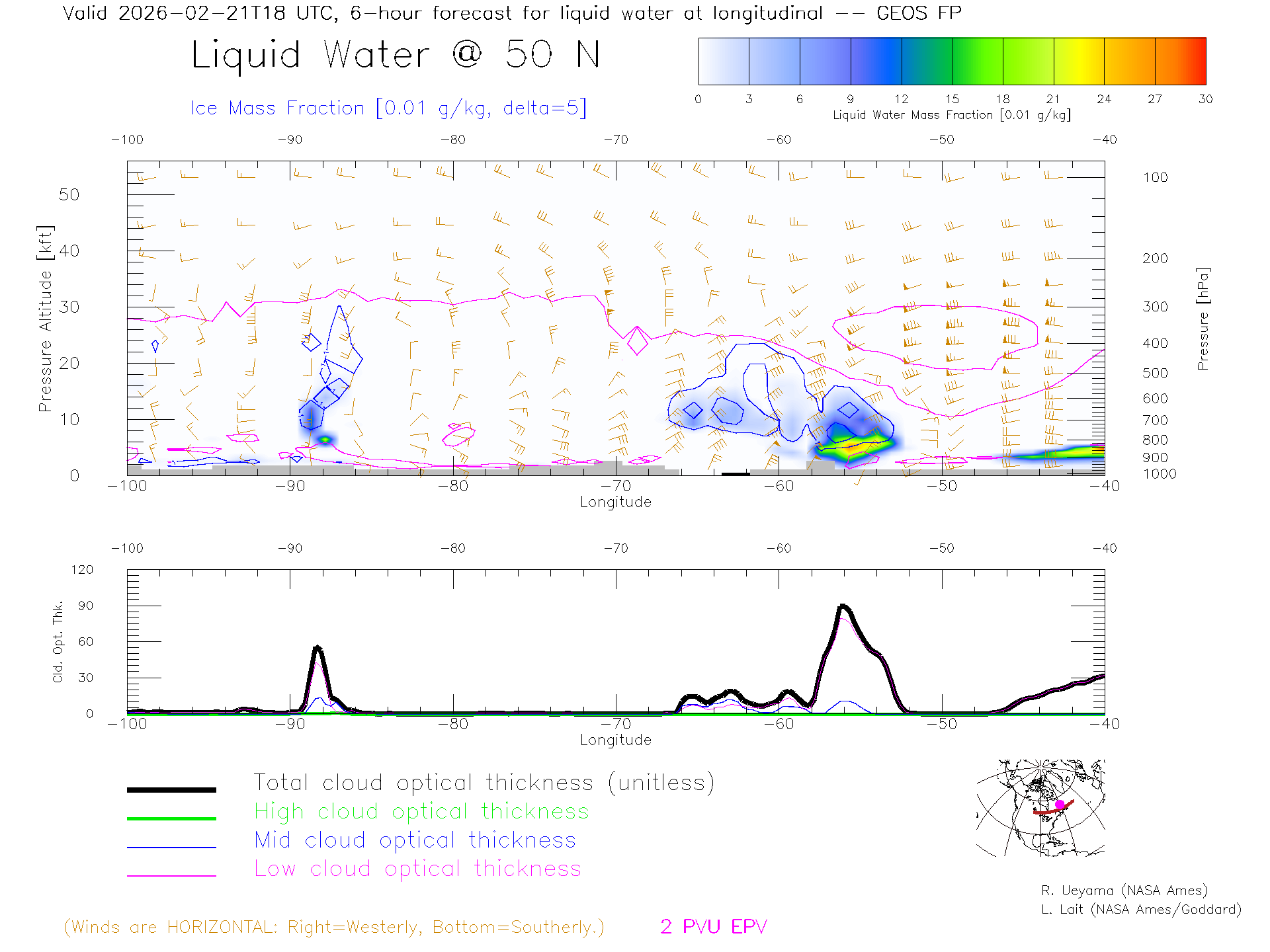 GEOS Forecast Cloud Water Content X-Section (50 N)