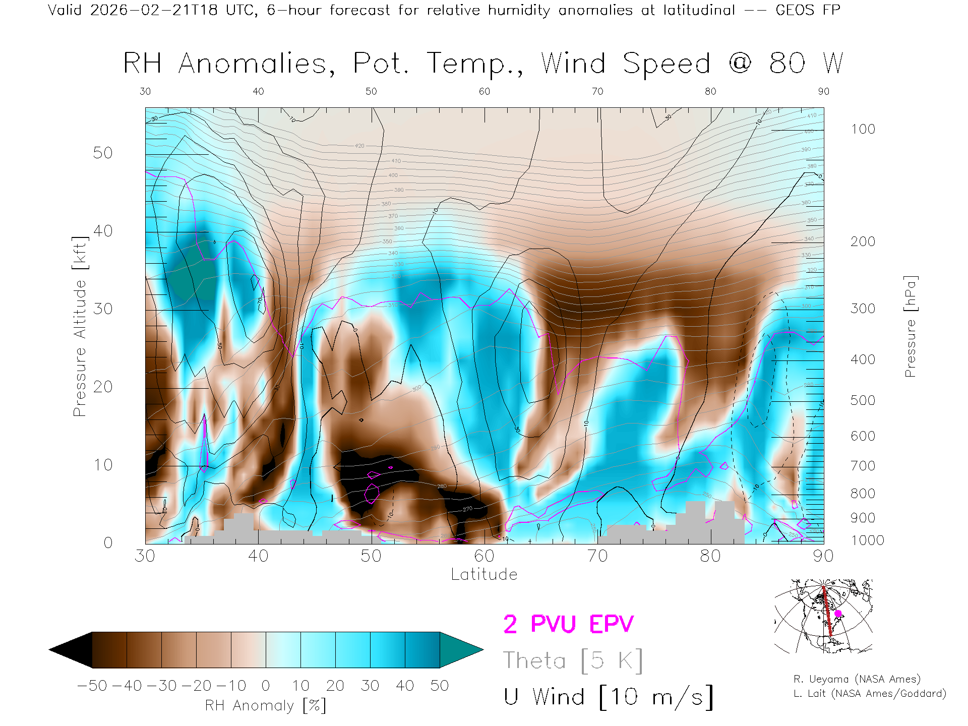 GEOS Forecast Rel. Hum. X-Section (80 W)