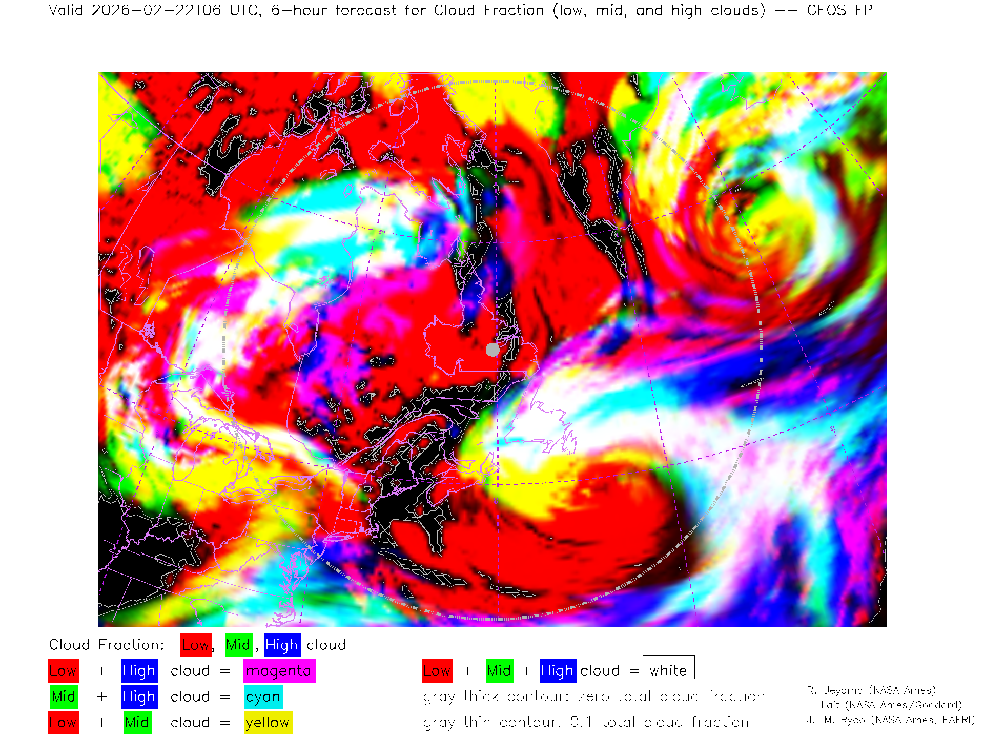 GEOS Forecast Low-, Mid- and High-level Cloud Fraction