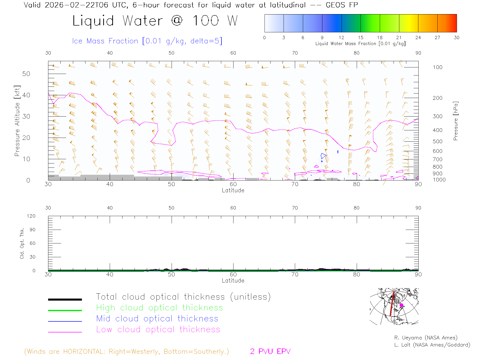 GEOS Forecast Cloud Water Content X-Section (100 W)