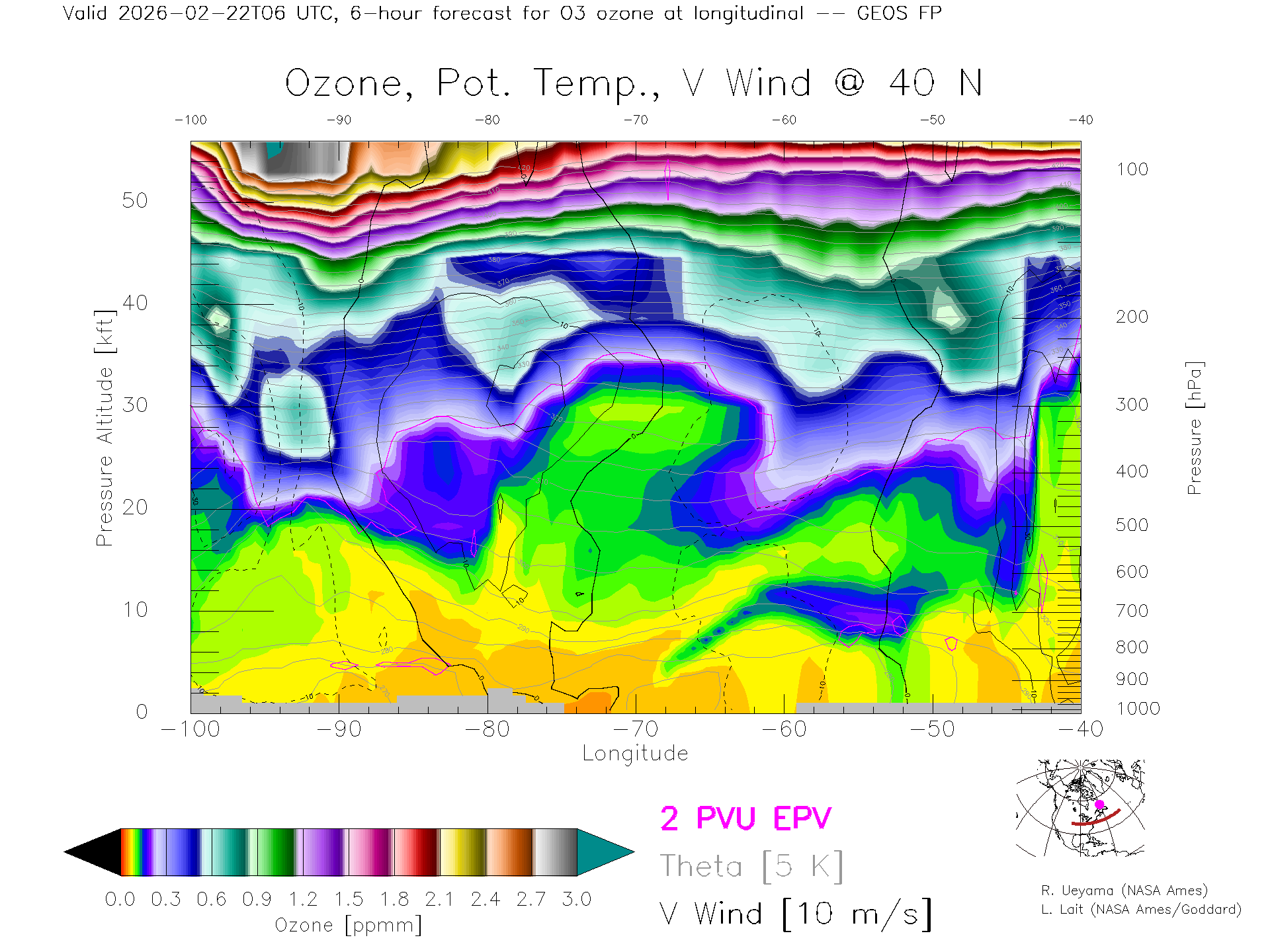 GEOS Forecast Ozone X-Section (40 N)
