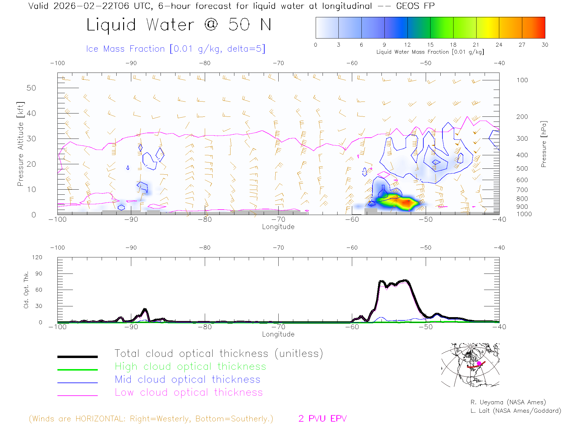 GEOS Forecast Cloud Water Content X-Section (50 N)